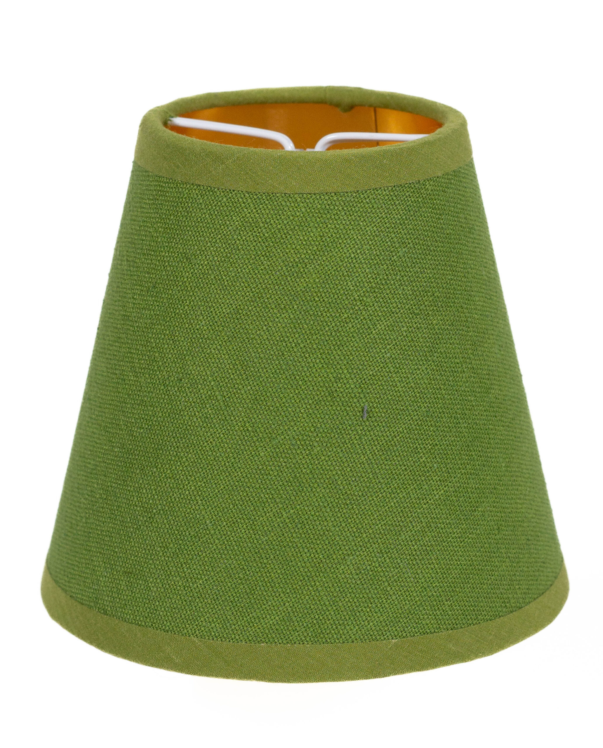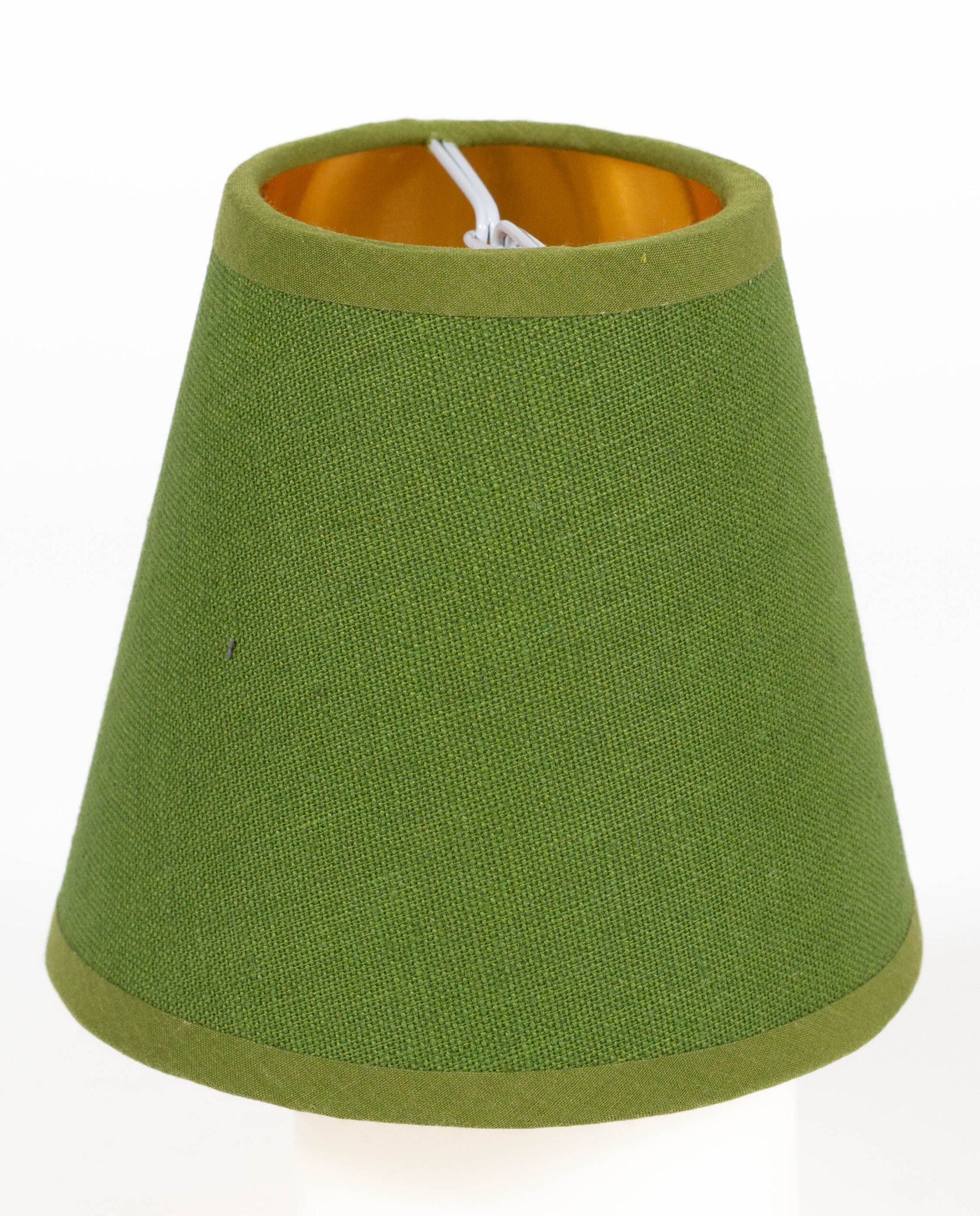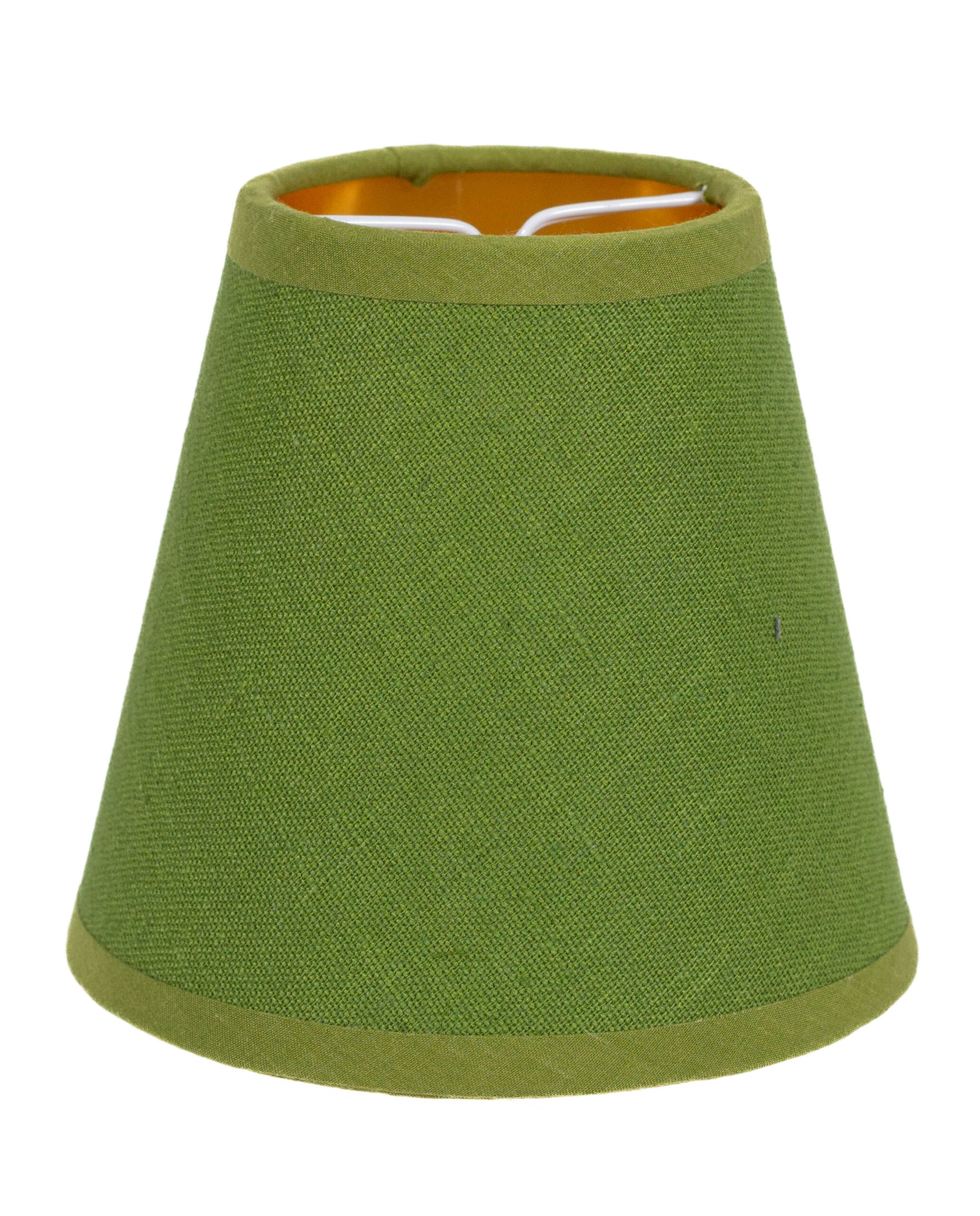 Klipp-Lampenschirm X, grüner Leinen auf Karton, innen gold, H: 12 cm, ø-oben: 7,5 cm, ø-unten: 13 cm