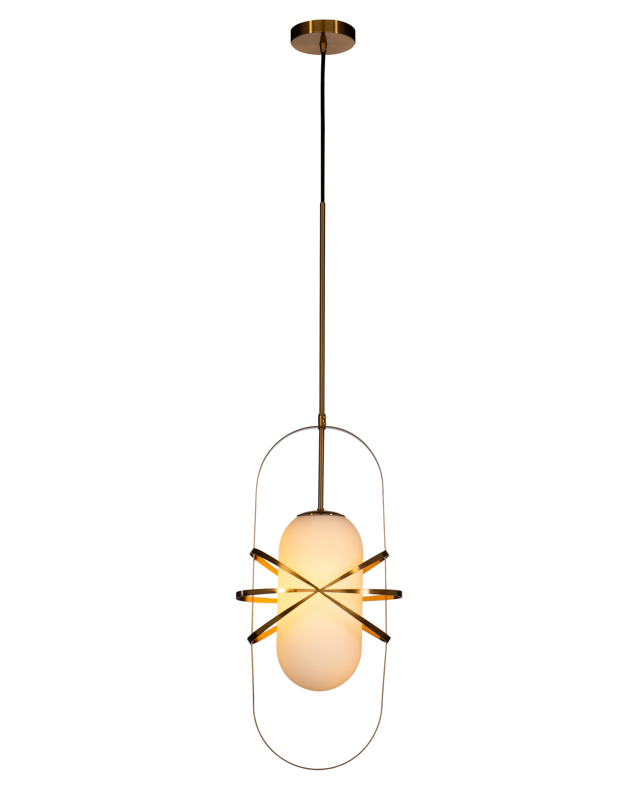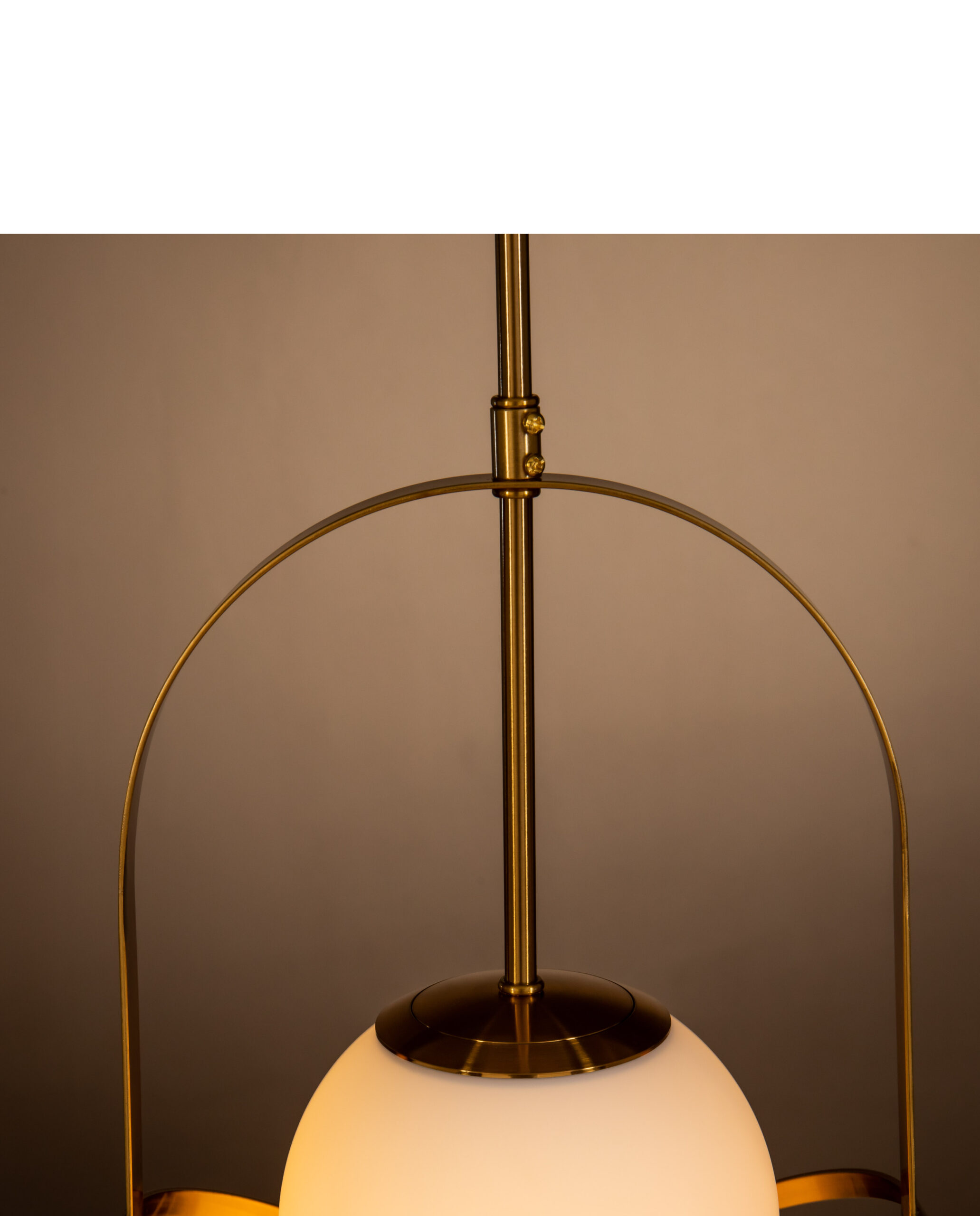 Pendelleuchter TOPHUS mit weiß satiniertem Glas + Messing-Rahmen, E27, H: 63 ø: 35 cm
