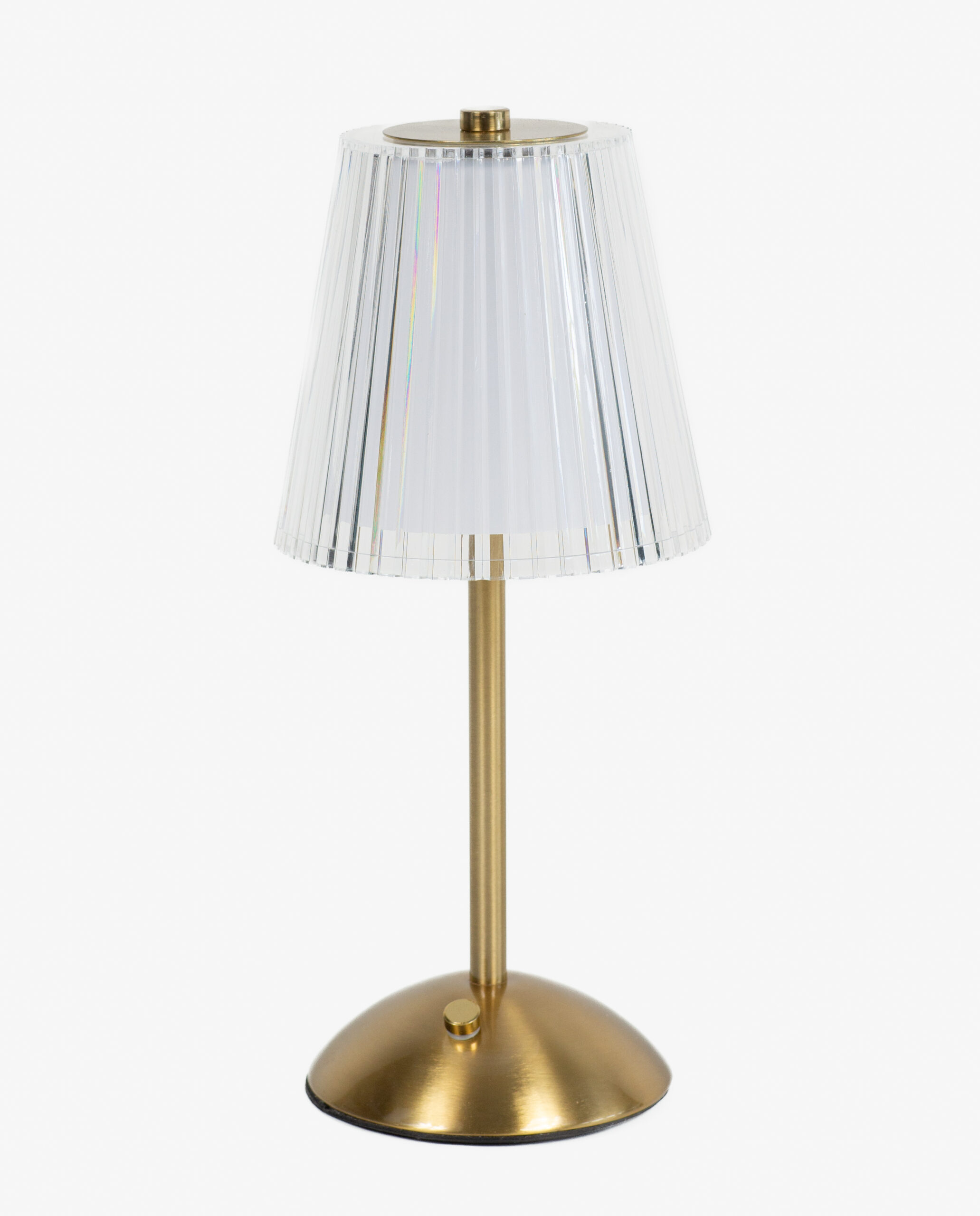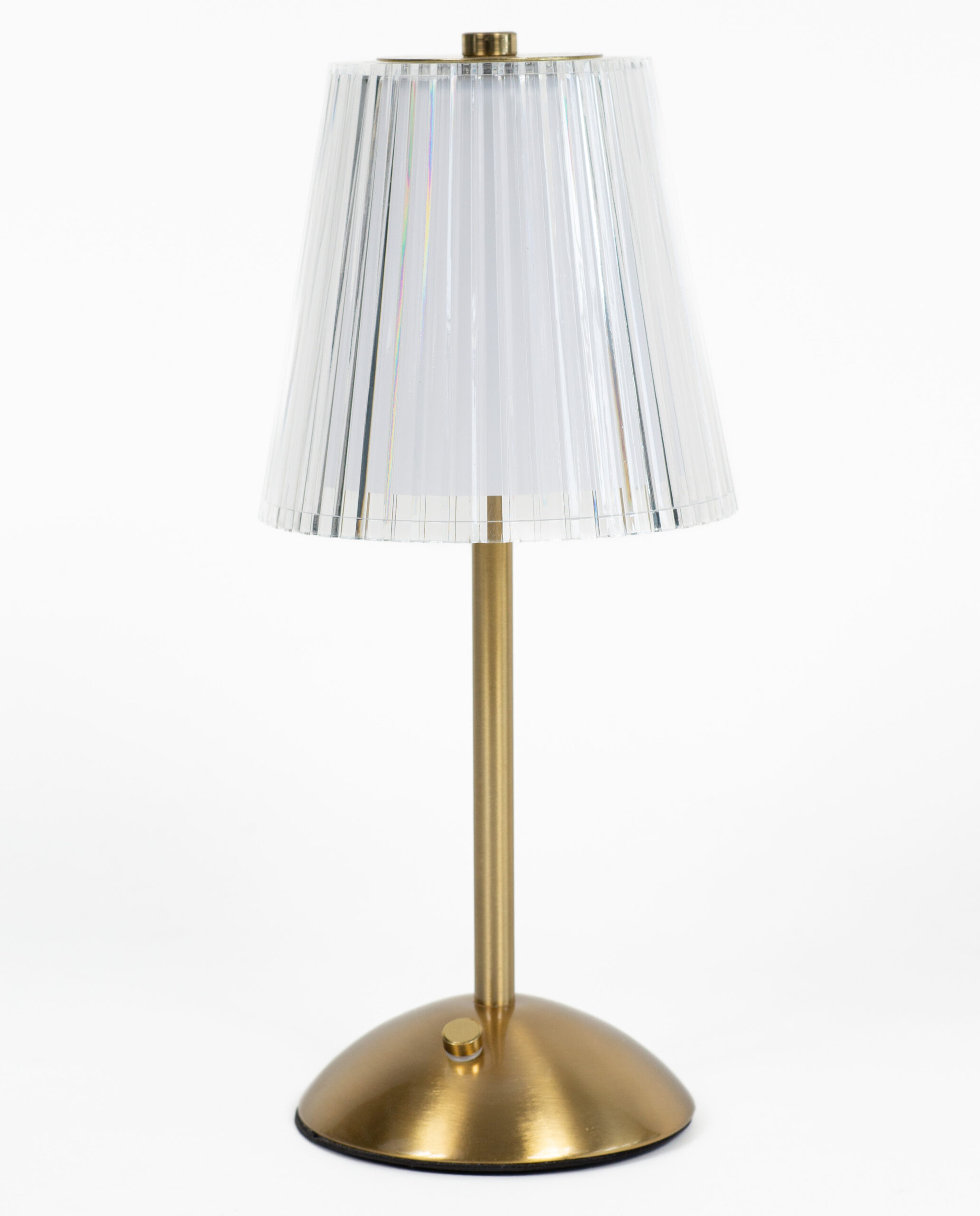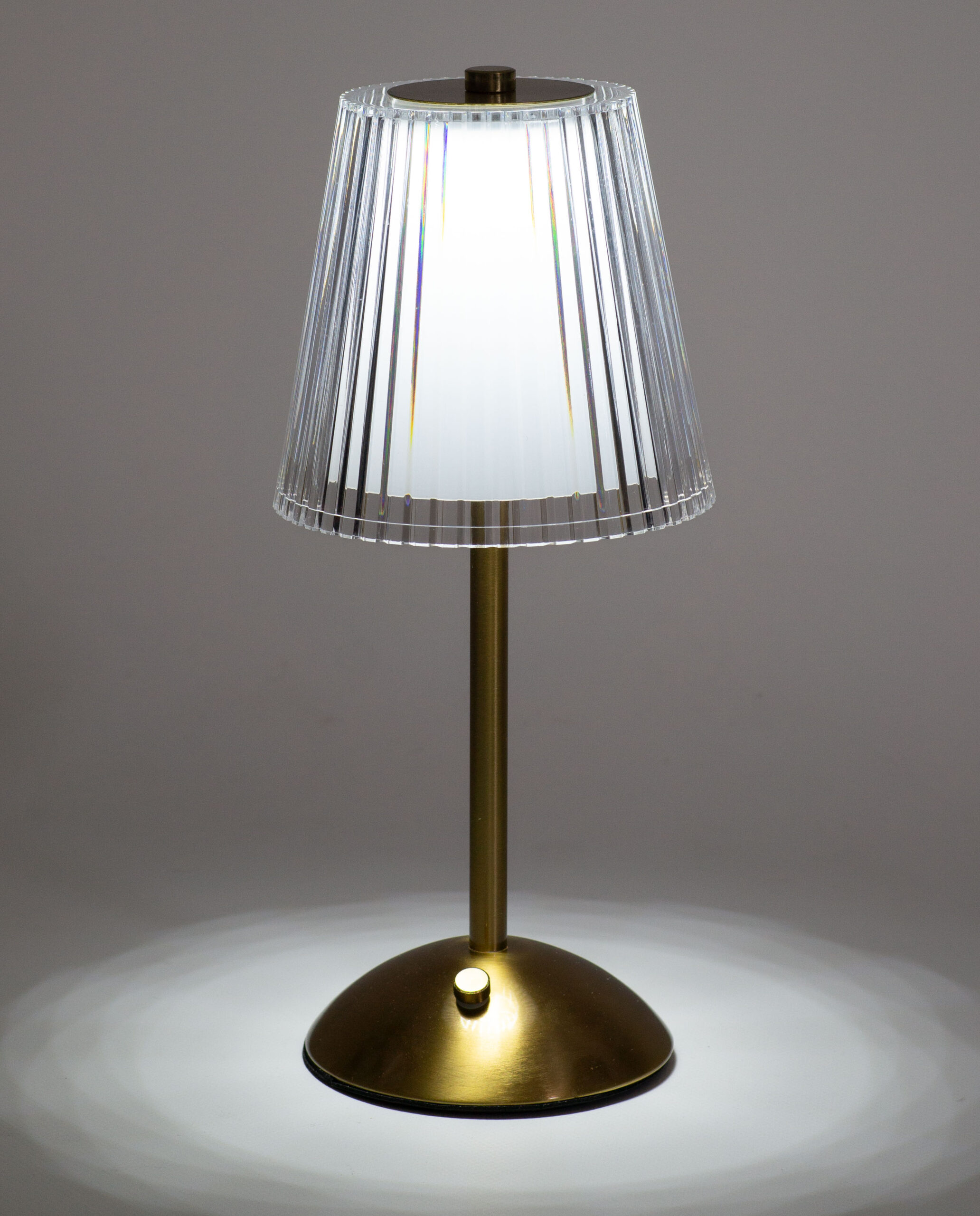 Akku-Tischleuchter in messing + klaren konischen Schirm