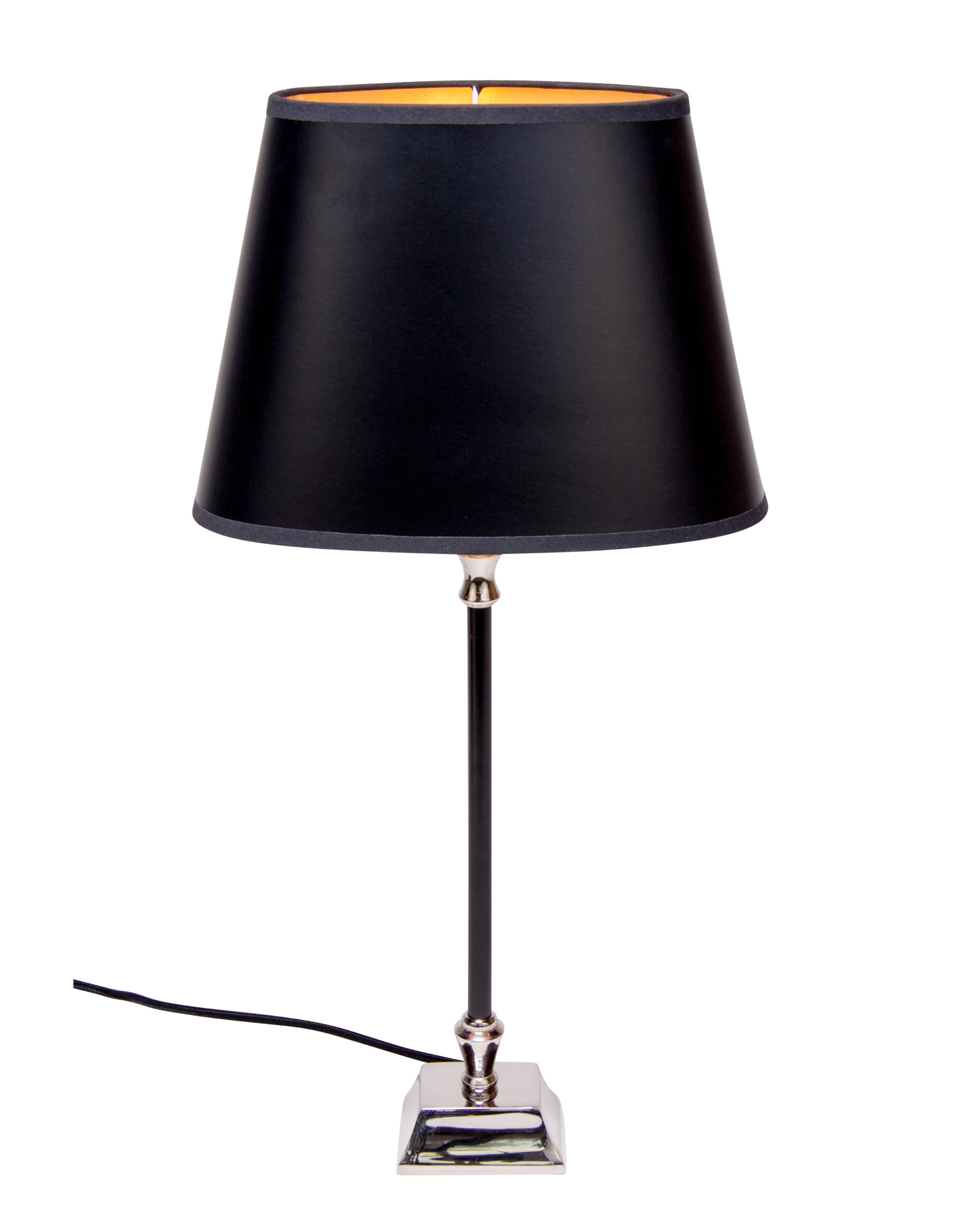 Tischleuchter MAXIME, vernickelt + schwarz, (ohne Schirm/ Typ O F Q T U), H: 39 Fuß: 6,5×8,5 cm