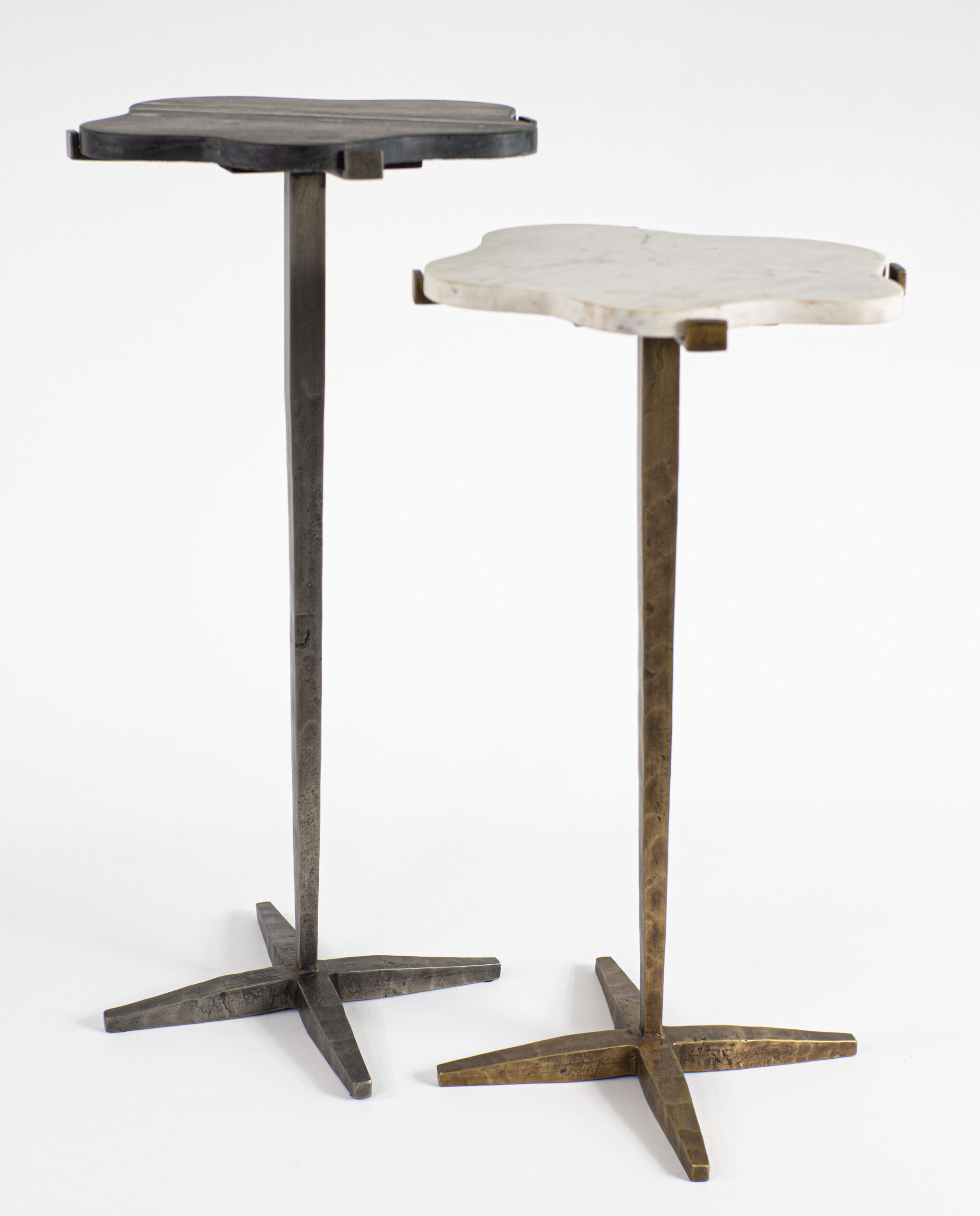 Metall-Beistelltisch FLUSH in messing antik, schwarzer Marmor auf Mittelfuß, H: 58 ø: 32 cm