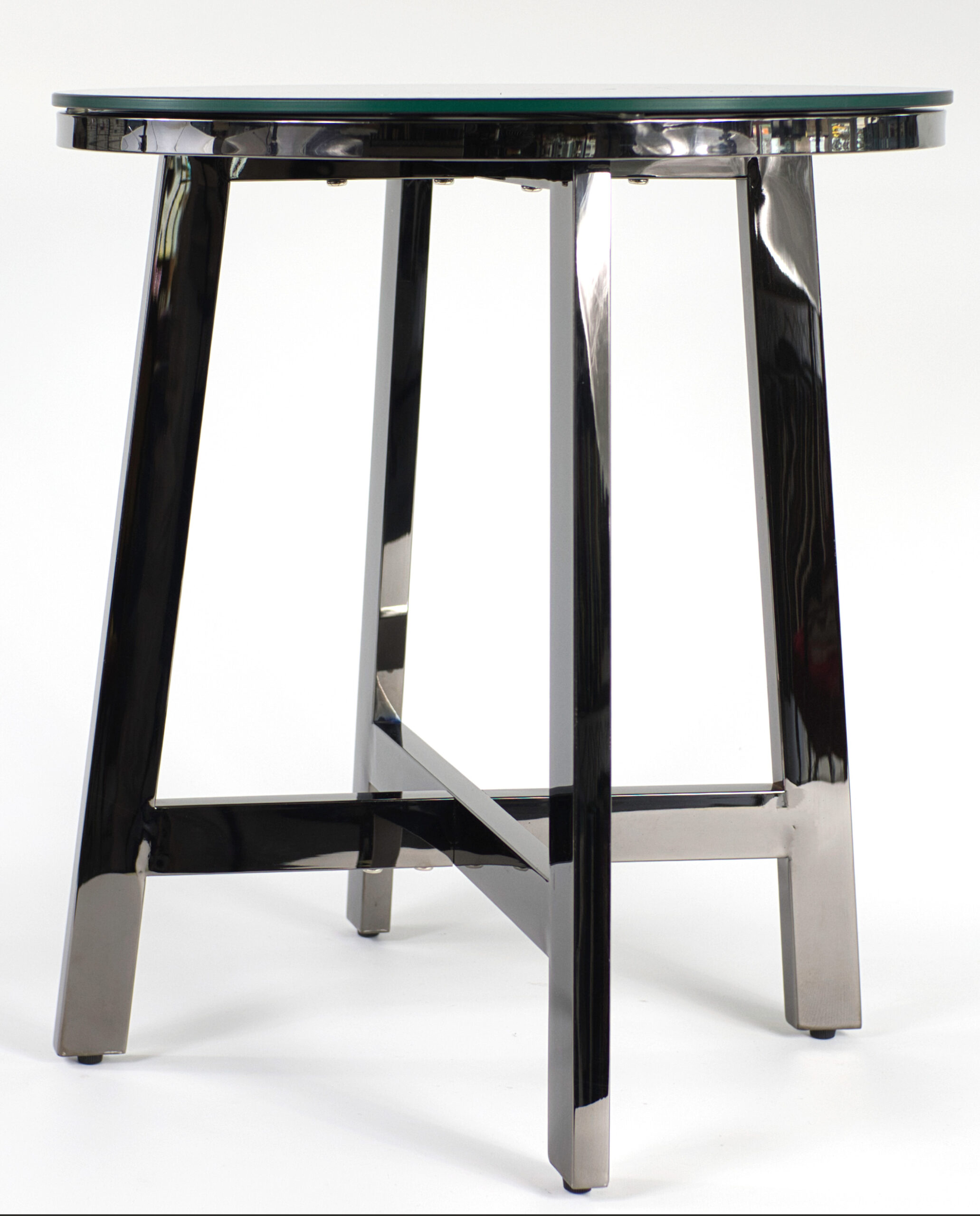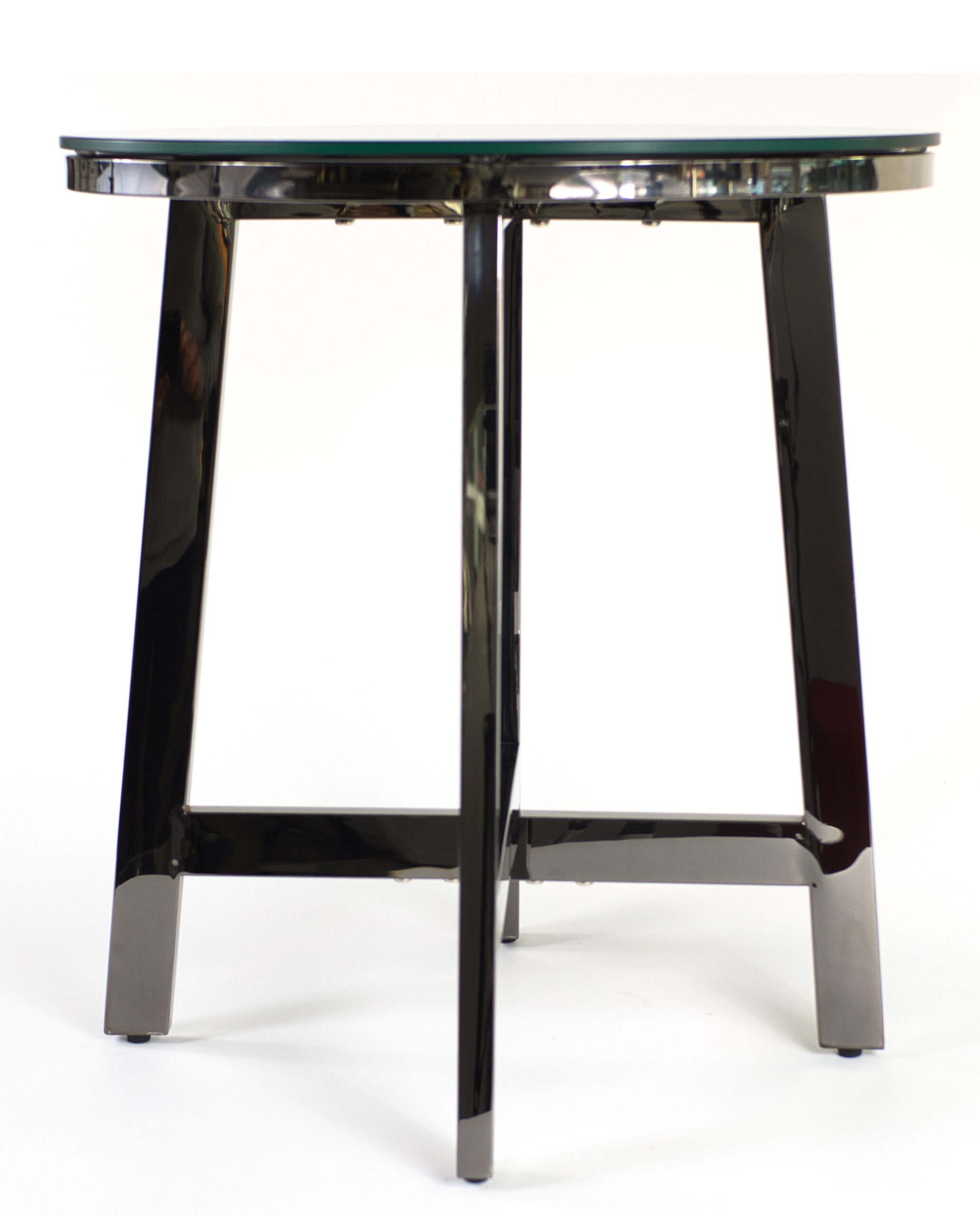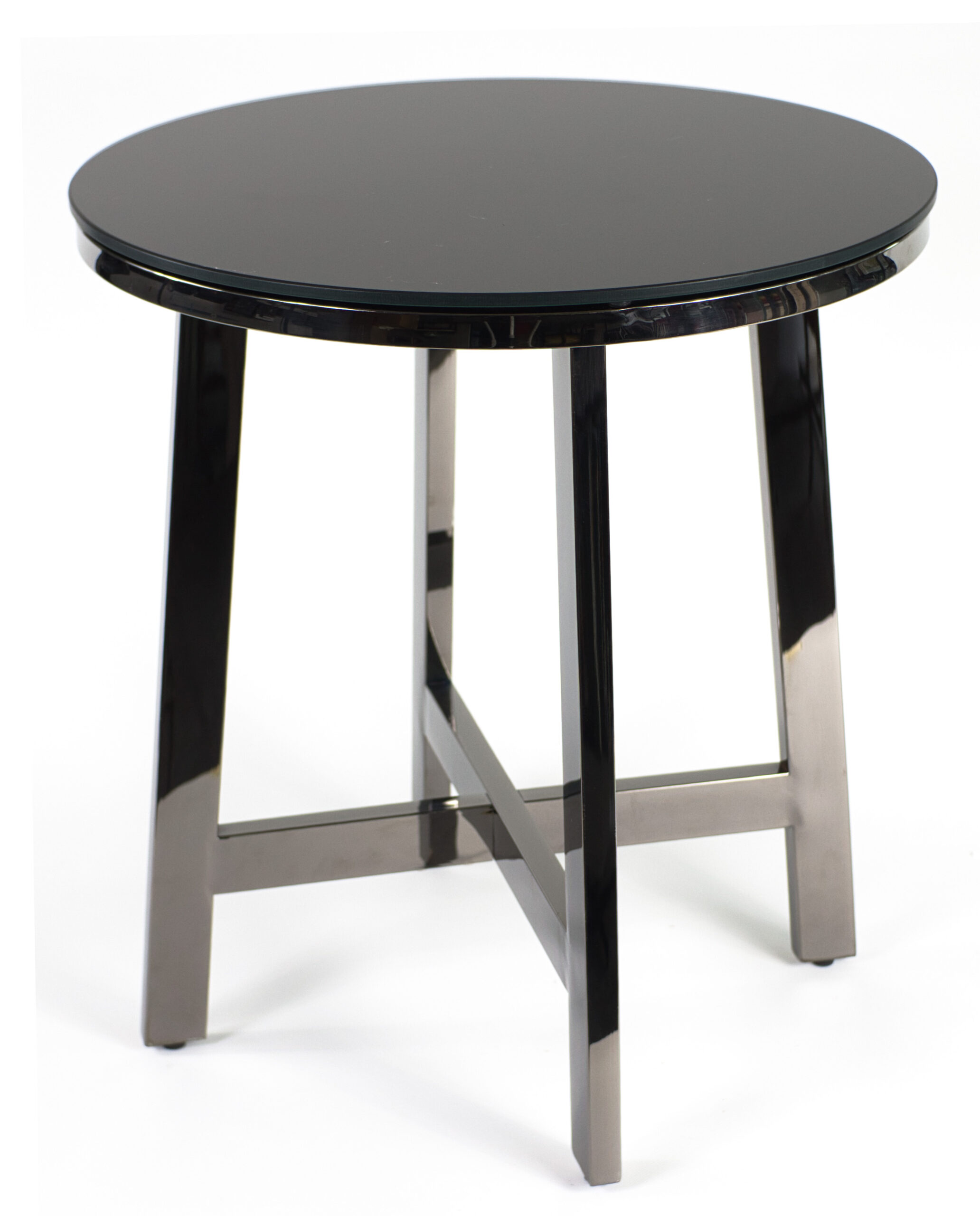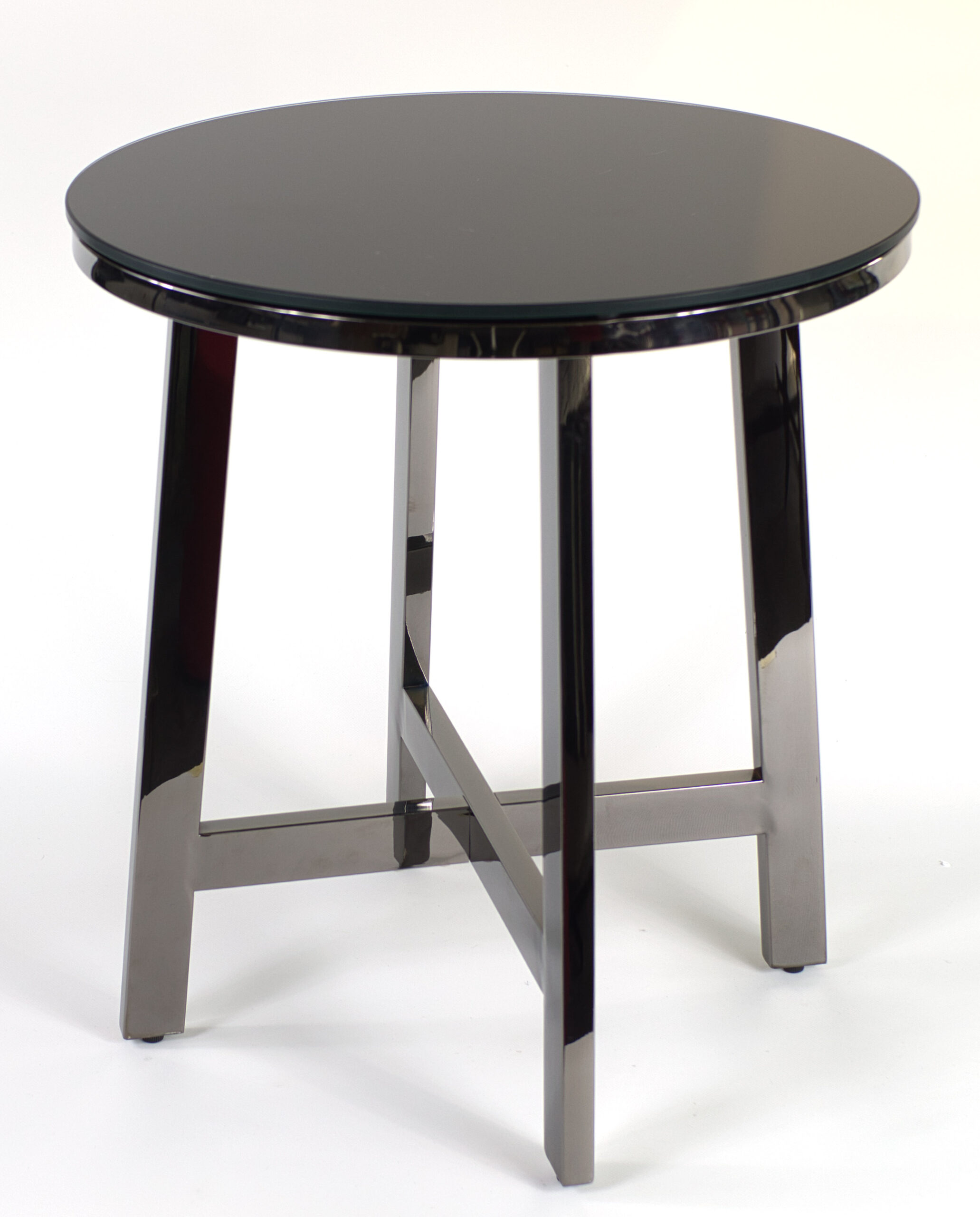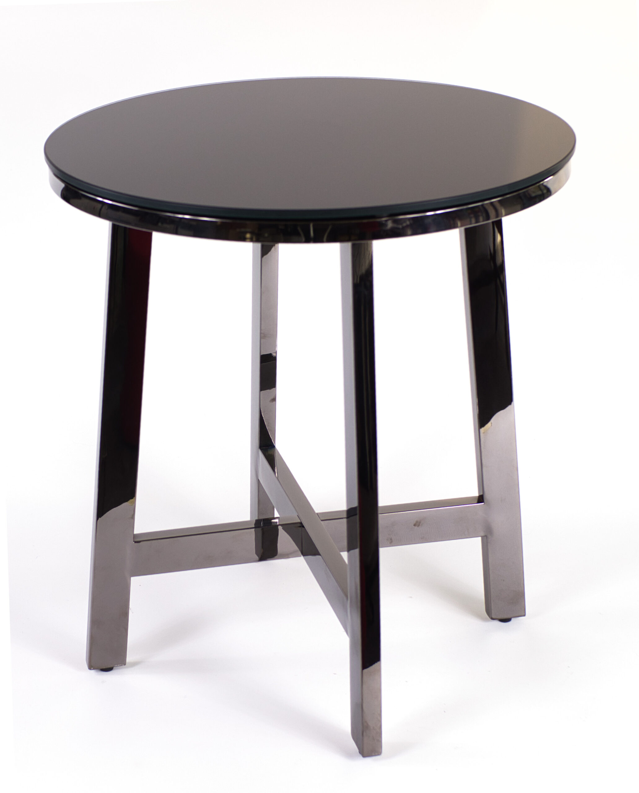 runder Metall-Beistelltisch NOIR in schwarz-verchromt mit dunkler Glasplatte, H: 55 ø: 50 cm