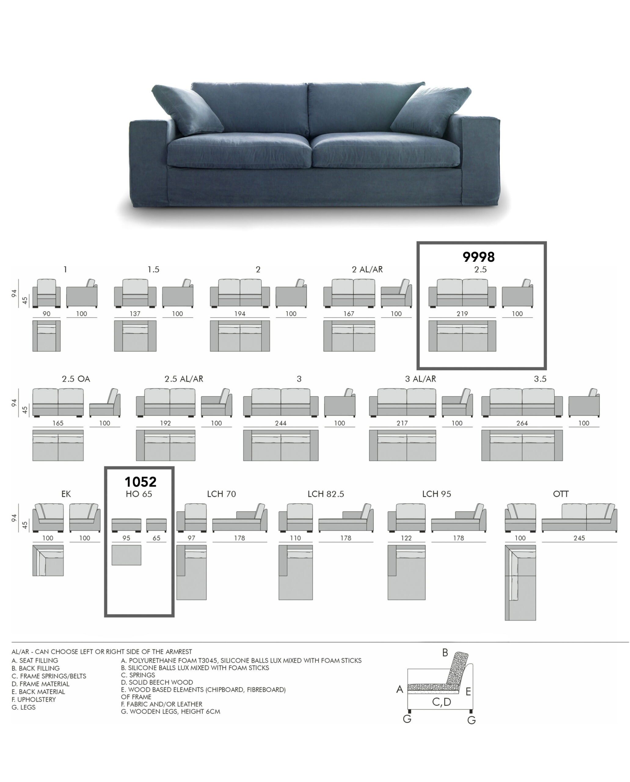 Hussen-Sofa VARESE, HBT: 94/219/100 cm, inkl. Stoff aus Preisgruppe A, (weitere Modelle möglich, bitte erfragen!)