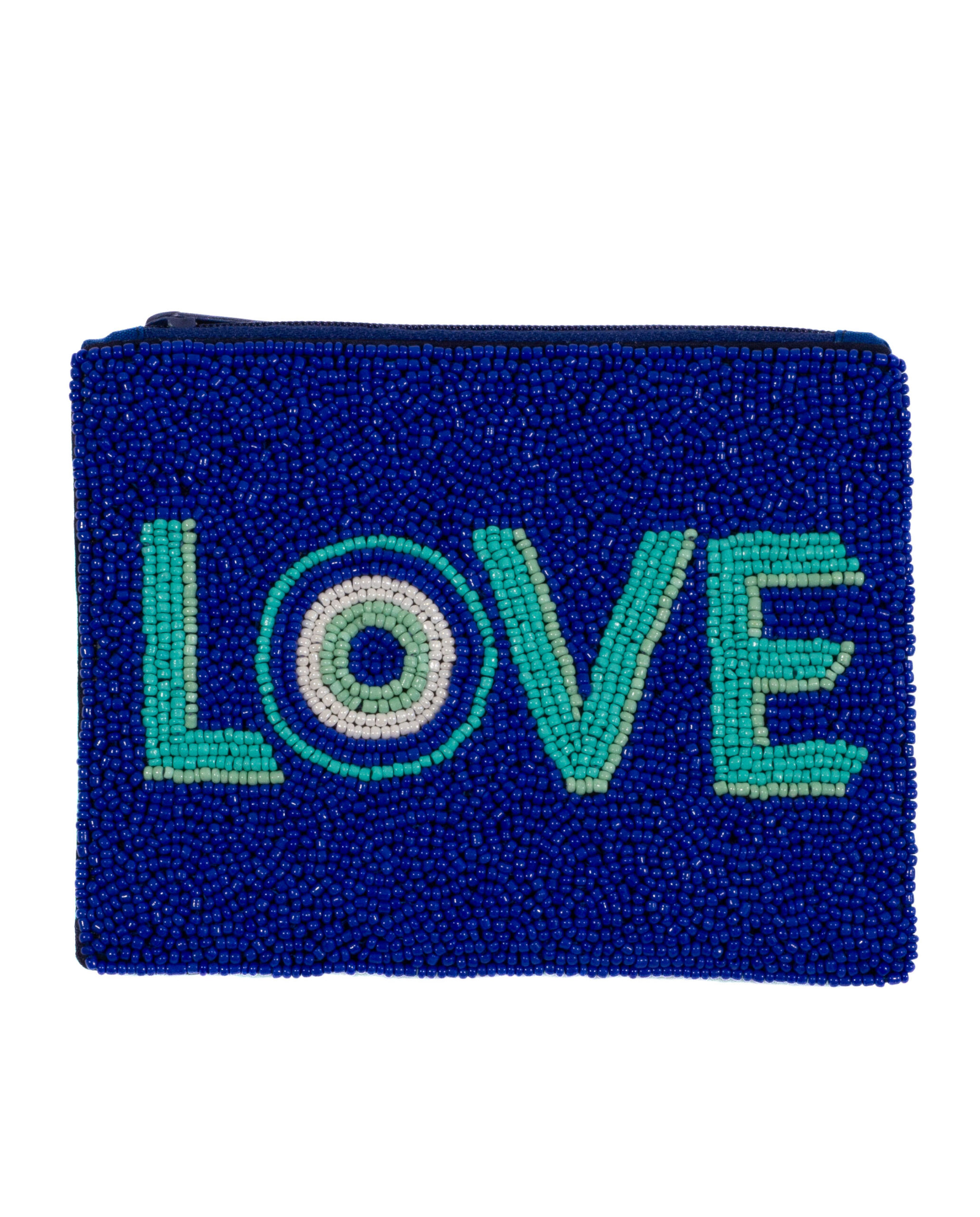 rechteckiger perlenbesetzter Beutel LOVE in blau, HBT: 11/15/1 cm, VE: 4 Stück