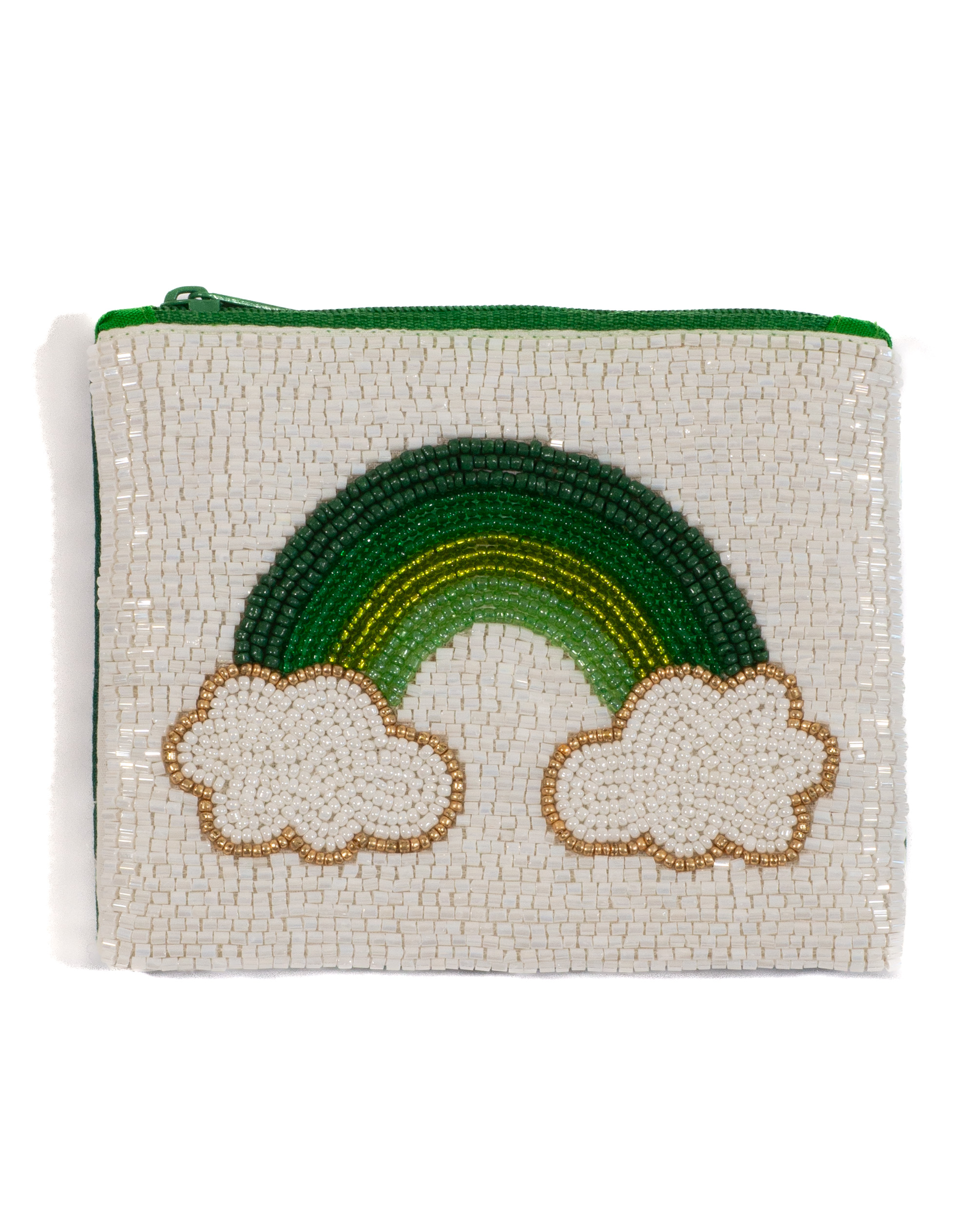 rechteckiger perlenbesetzter Beutel RAINBOW in weiß, HBT: 10/13/1 cm, mit Regenbogen-Motiv, VE: 4 Stück