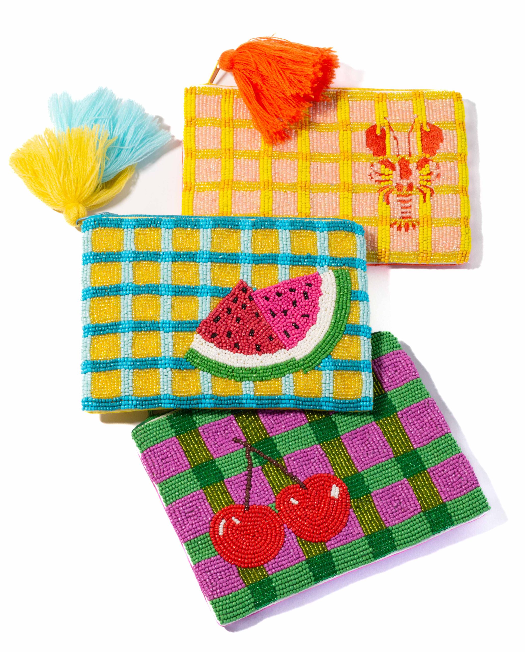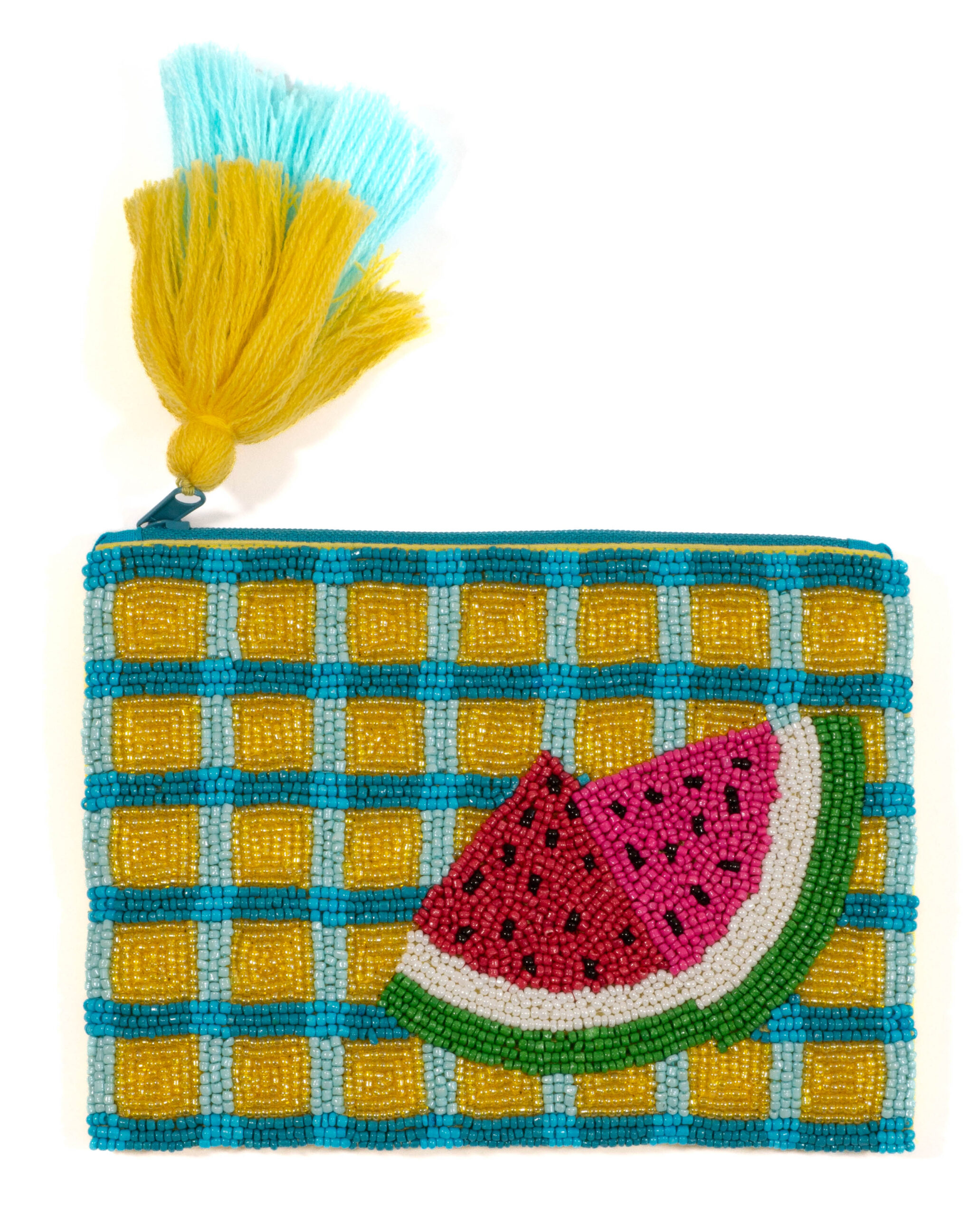 rechteckiger perlenbesetzter Beutel WATERMELON in gelb, HBT: 13/18/1 cm, VE: 4 Stück