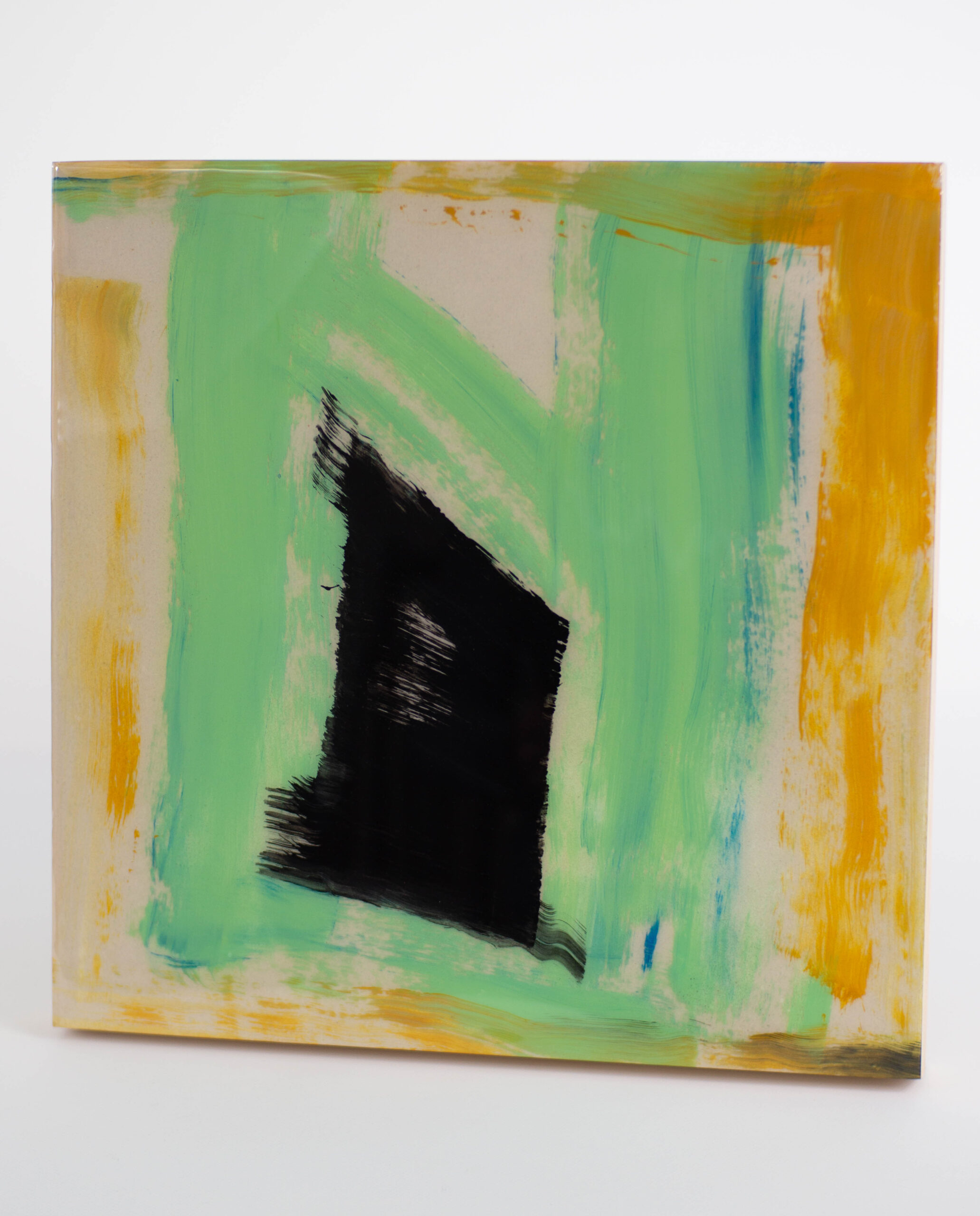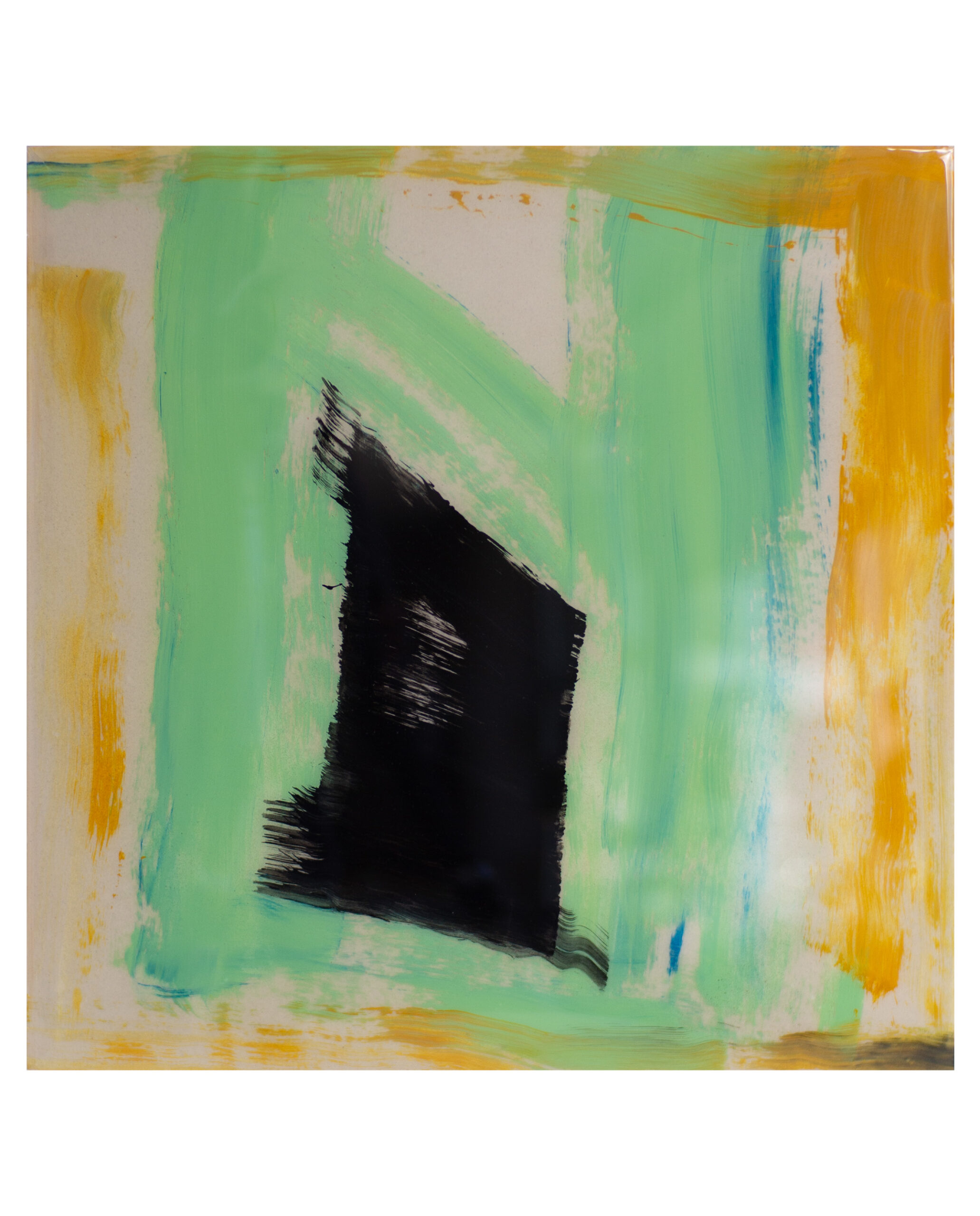 handgemaltes Holz-Wandbild BOIS II mit türkis, amber, schwarzen Muster, HBT: 40/40/3,5 cm, VE: 1 Stück