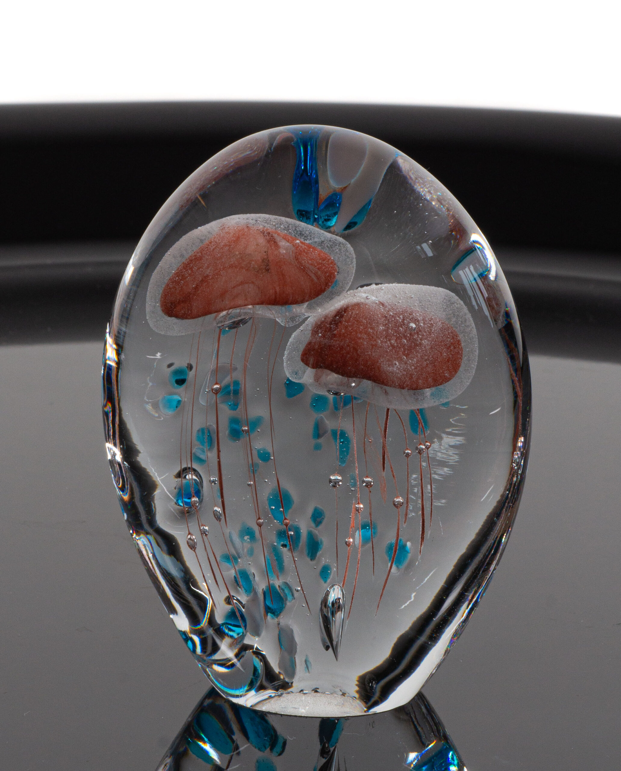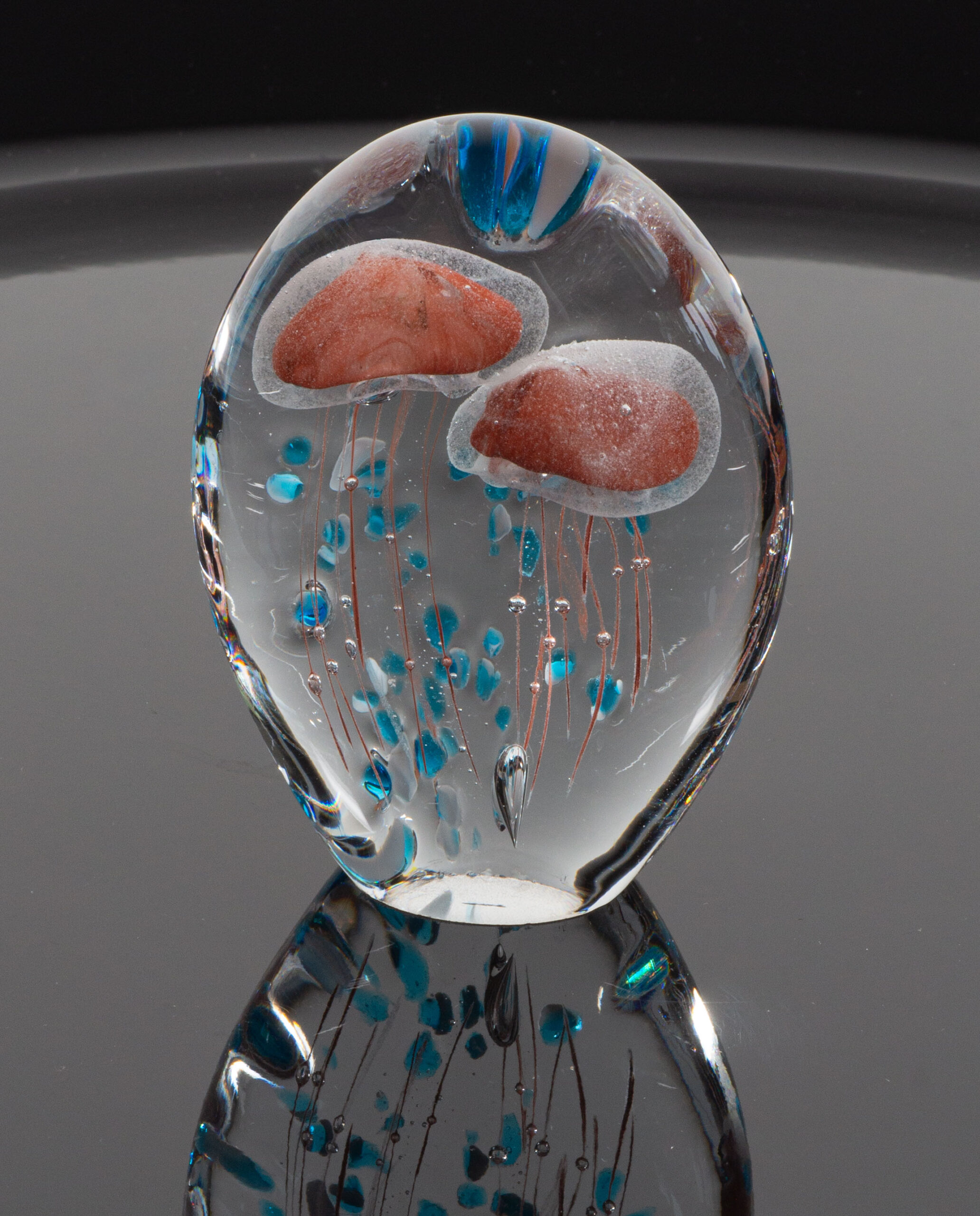 flache Glas-Deko-Objekt 2 JELLY’s in klar, HBT: 12/9/3 cm, Qualle in rot, VE: 4 Stück