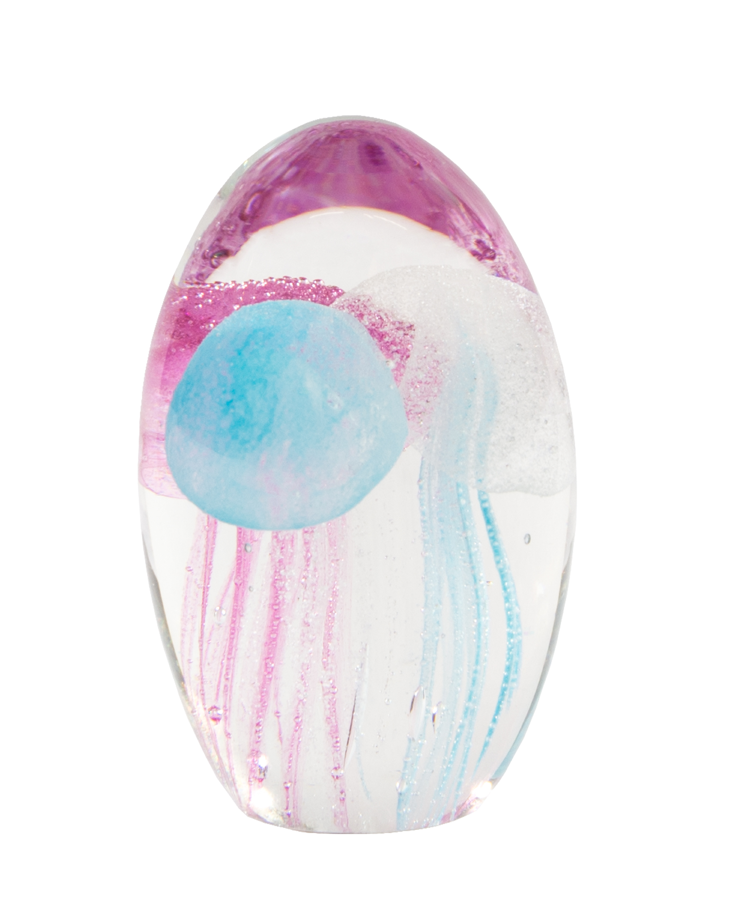 Glas-Objekt JELLY mit 3 Quallen, blau, weiß, violett, H: 8 ø: 5 cm, 330 gramm