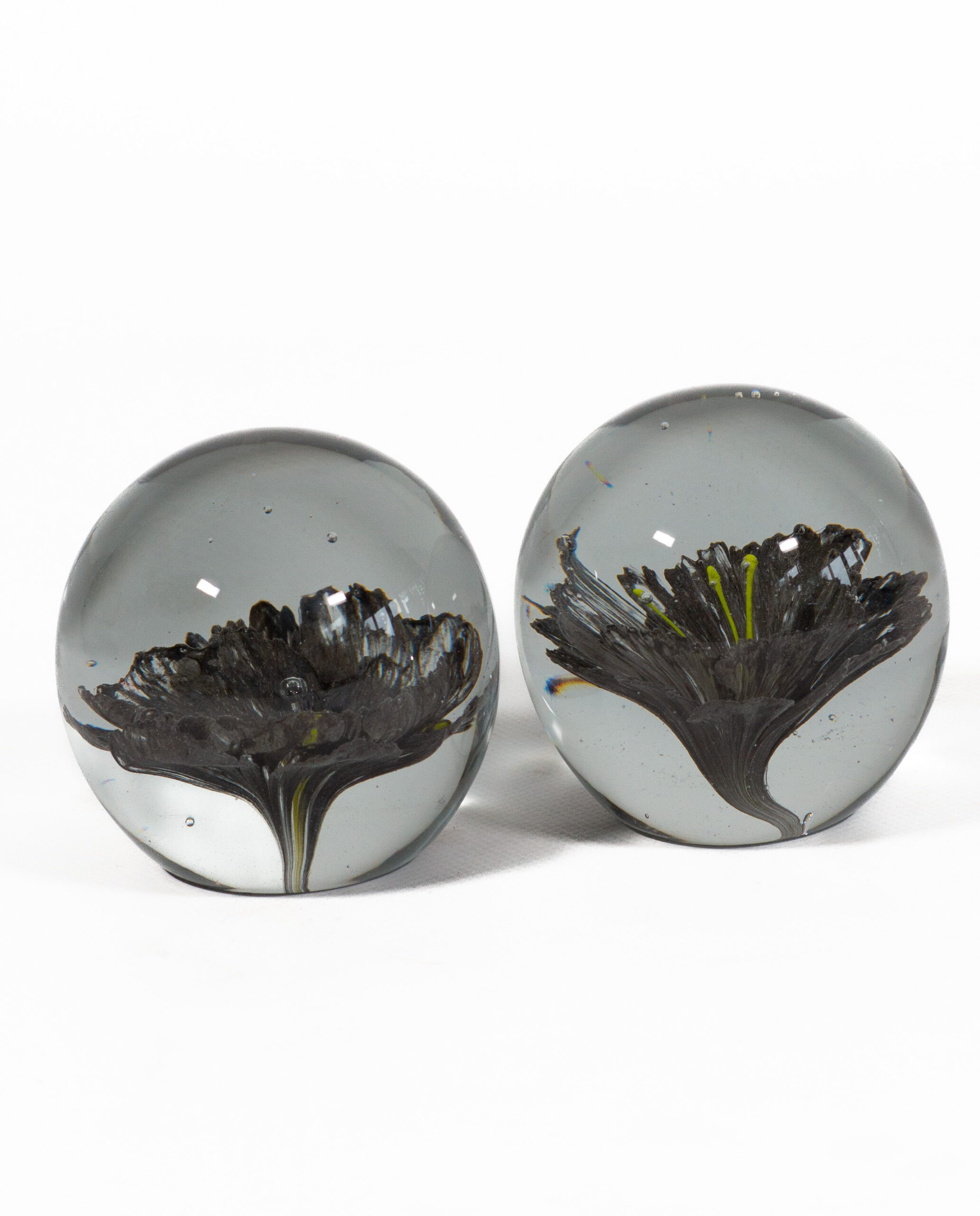 rundes Glas-Deko-Objekt Flower in klar, H: 8 ø: 8 cm, dunkelgraue Blüte, VE: 2 Stück