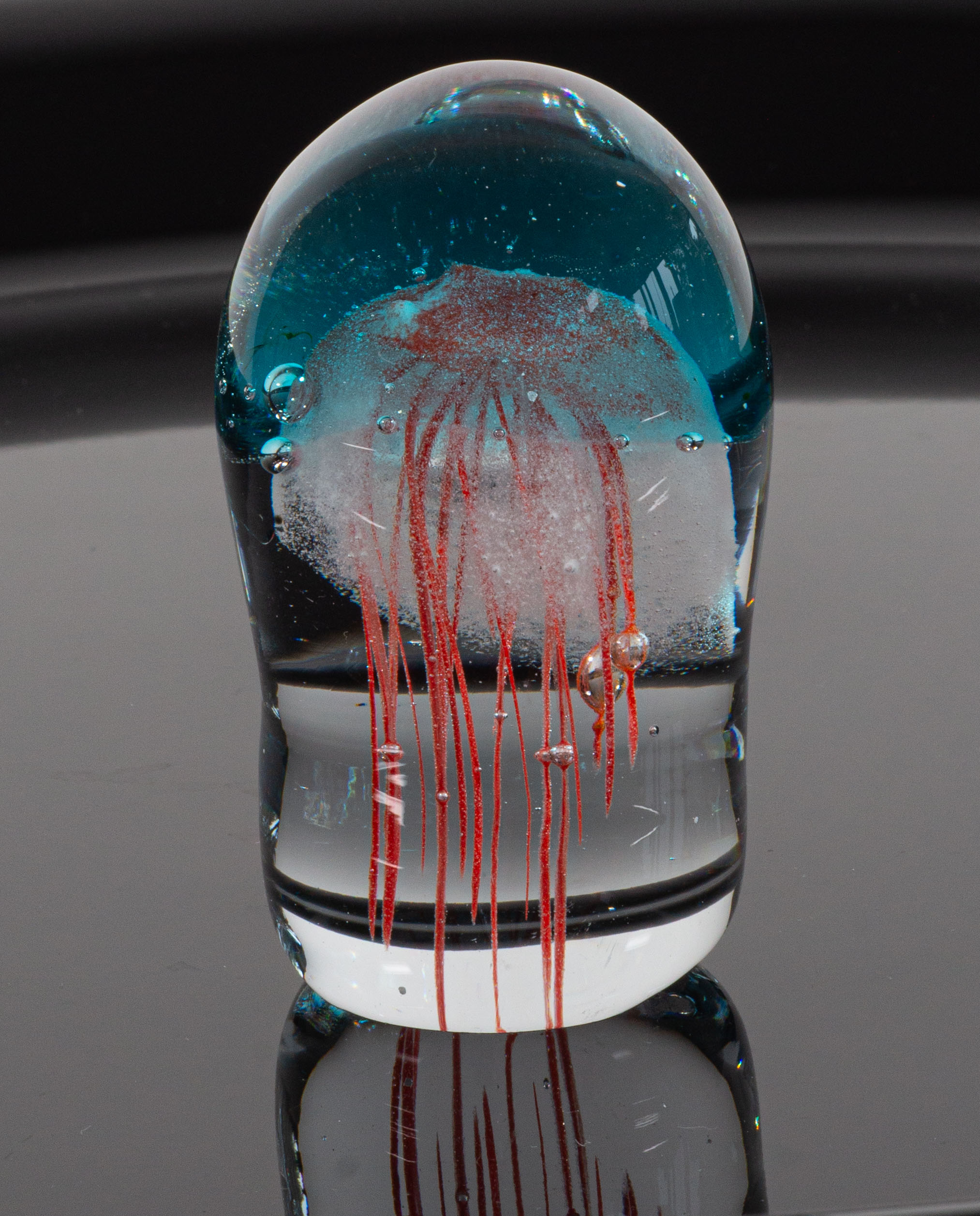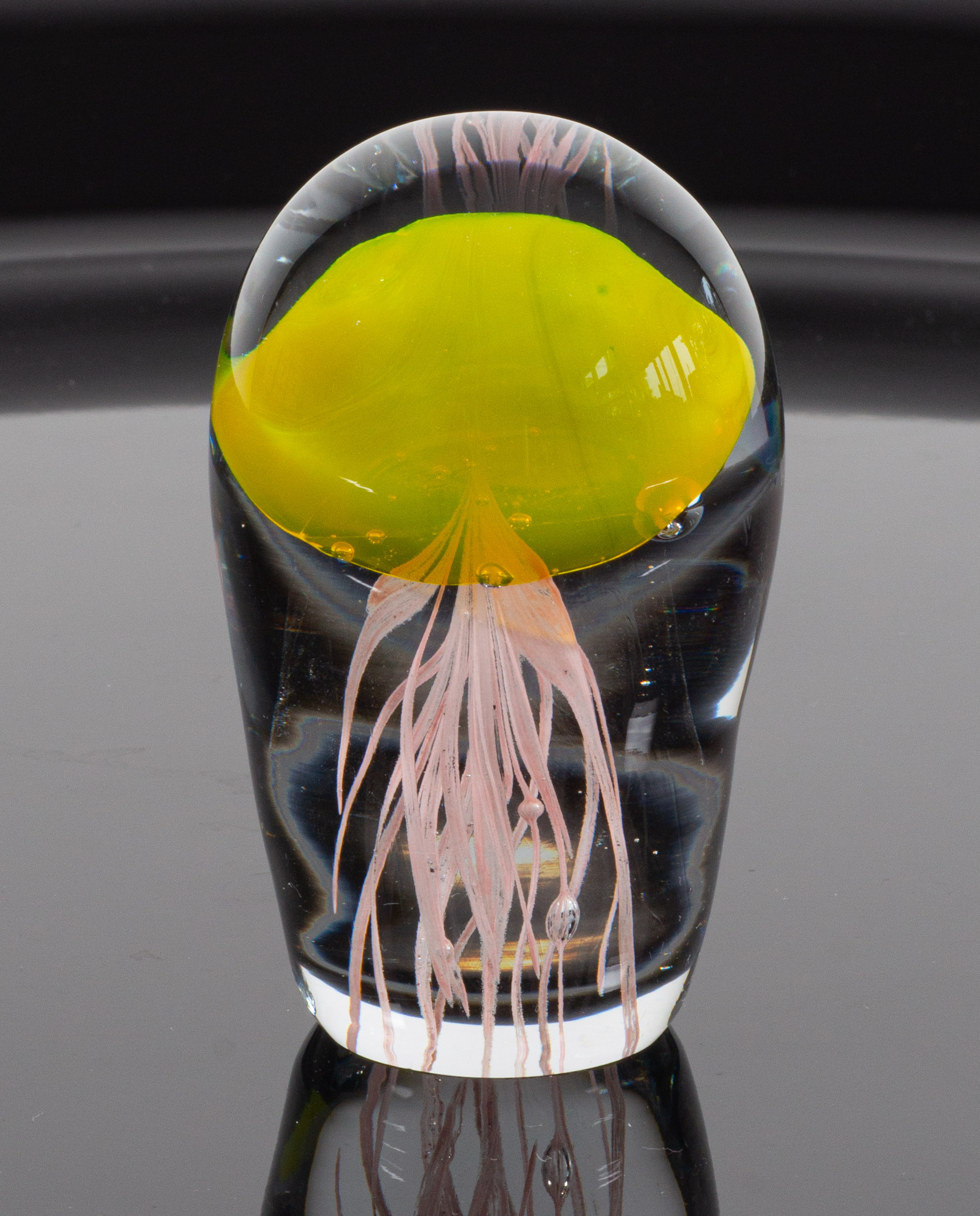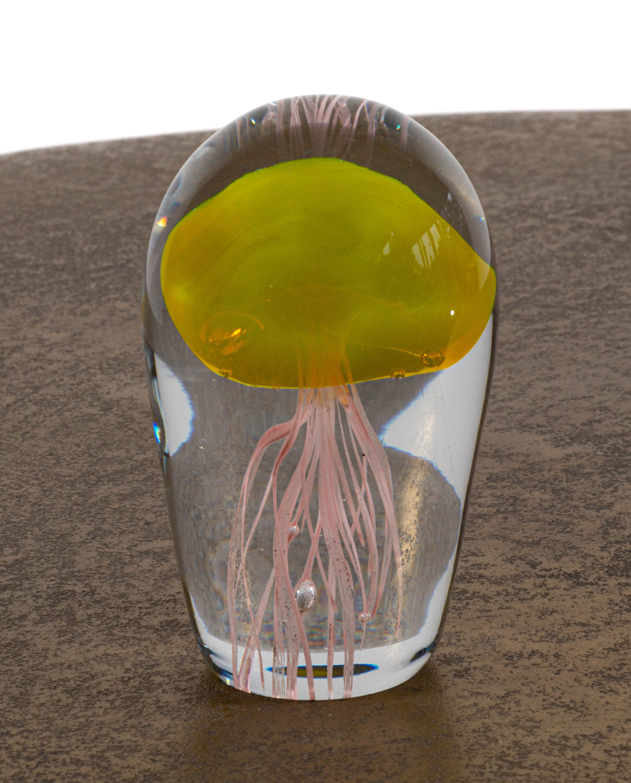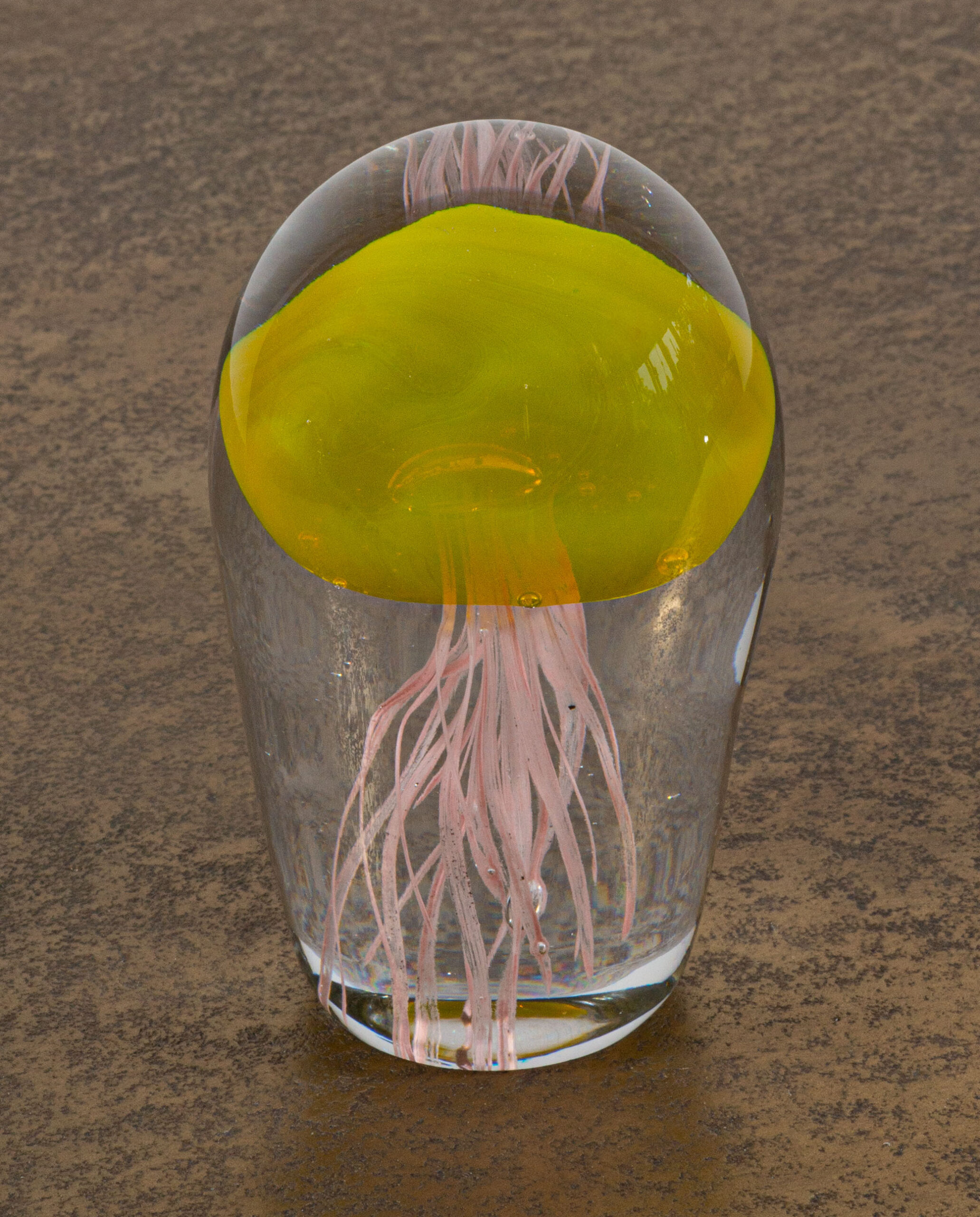 Glas-Deko-Objekt JELLY in klar, H: 10 ø: 6 cm, Qualle in gelb und rosa, VE: 4 Stück