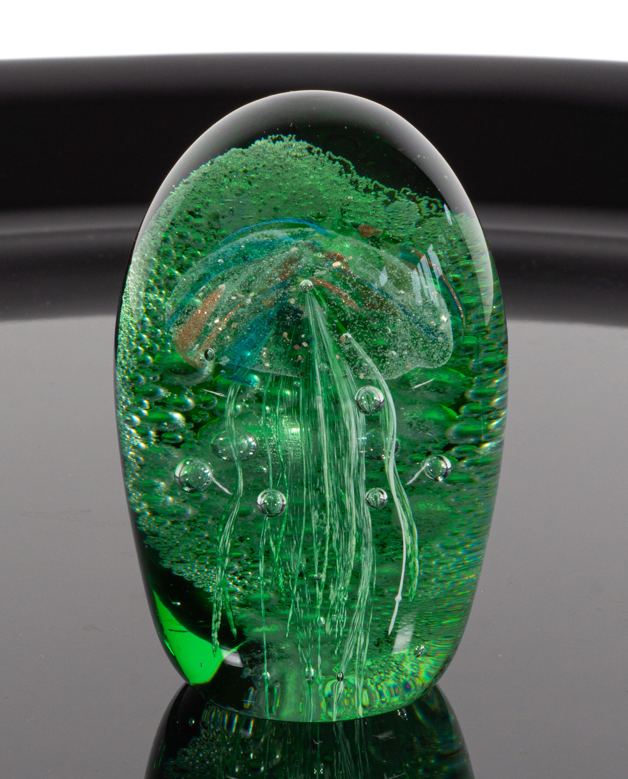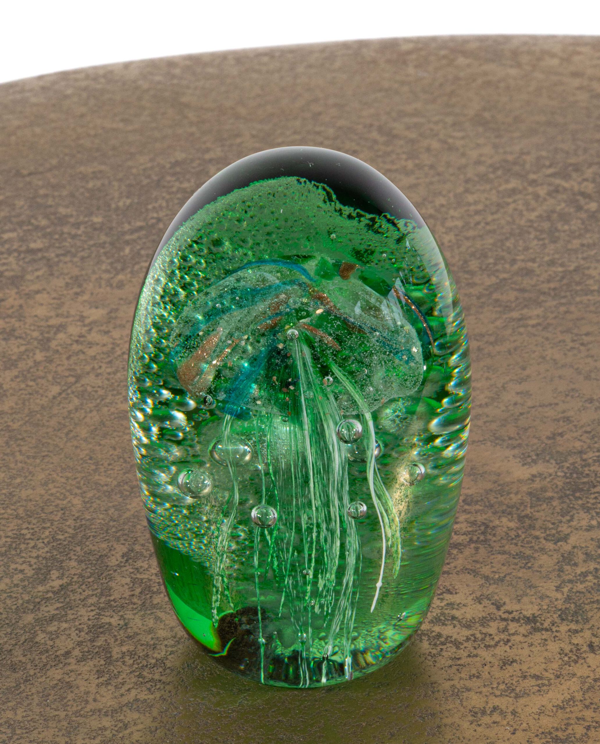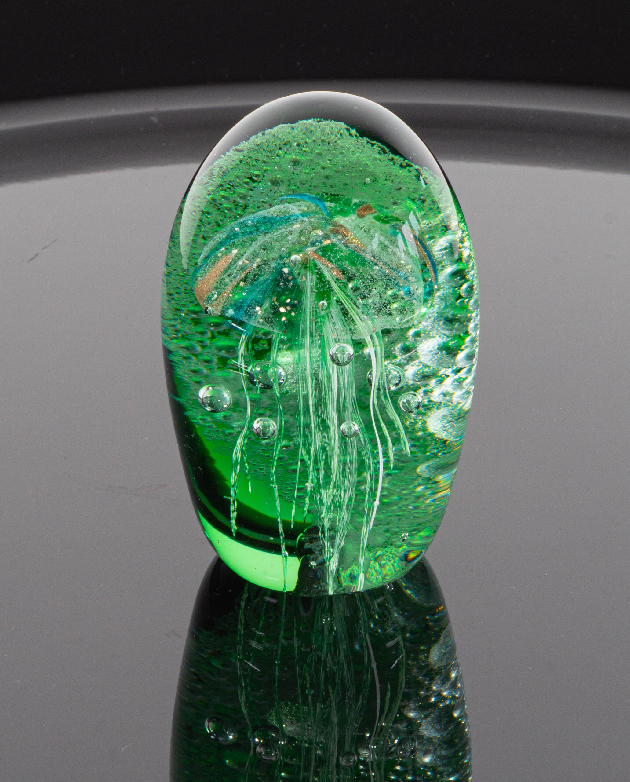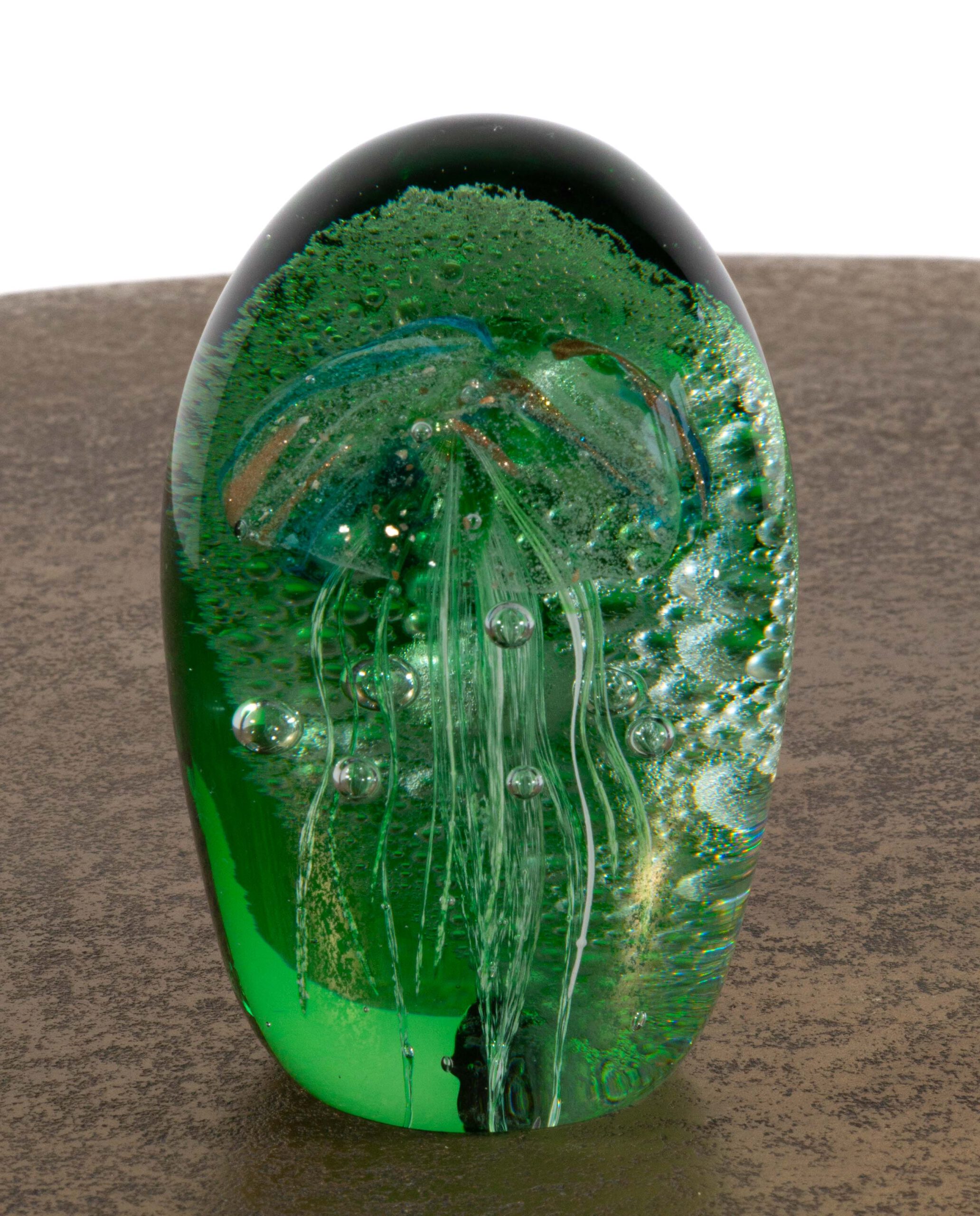 Glas-Deko-Objekt in klar, H: 11 ø: 7 cm, Qualle in bunt, Hintergrund in grün + weiß, VE: 4 Stück