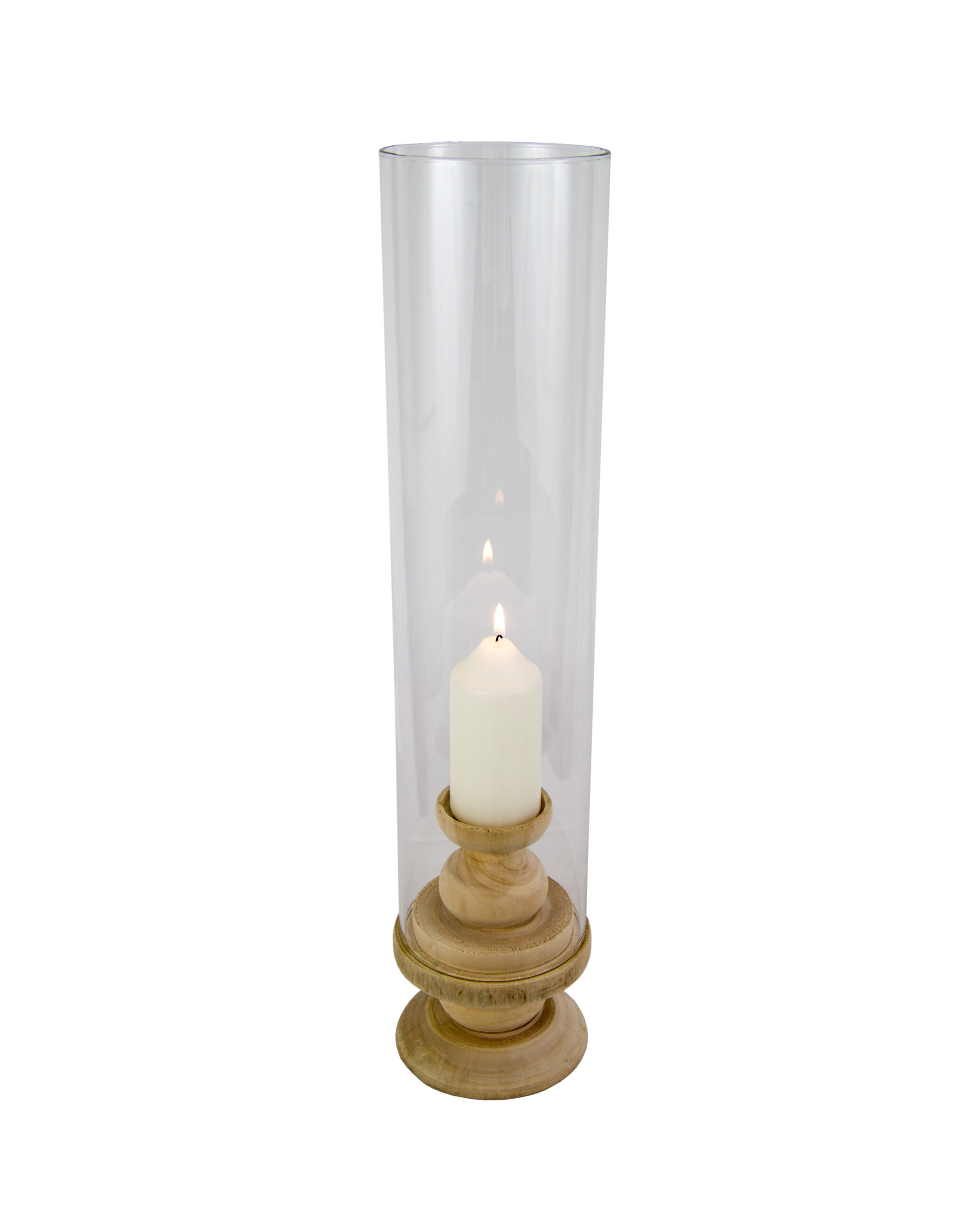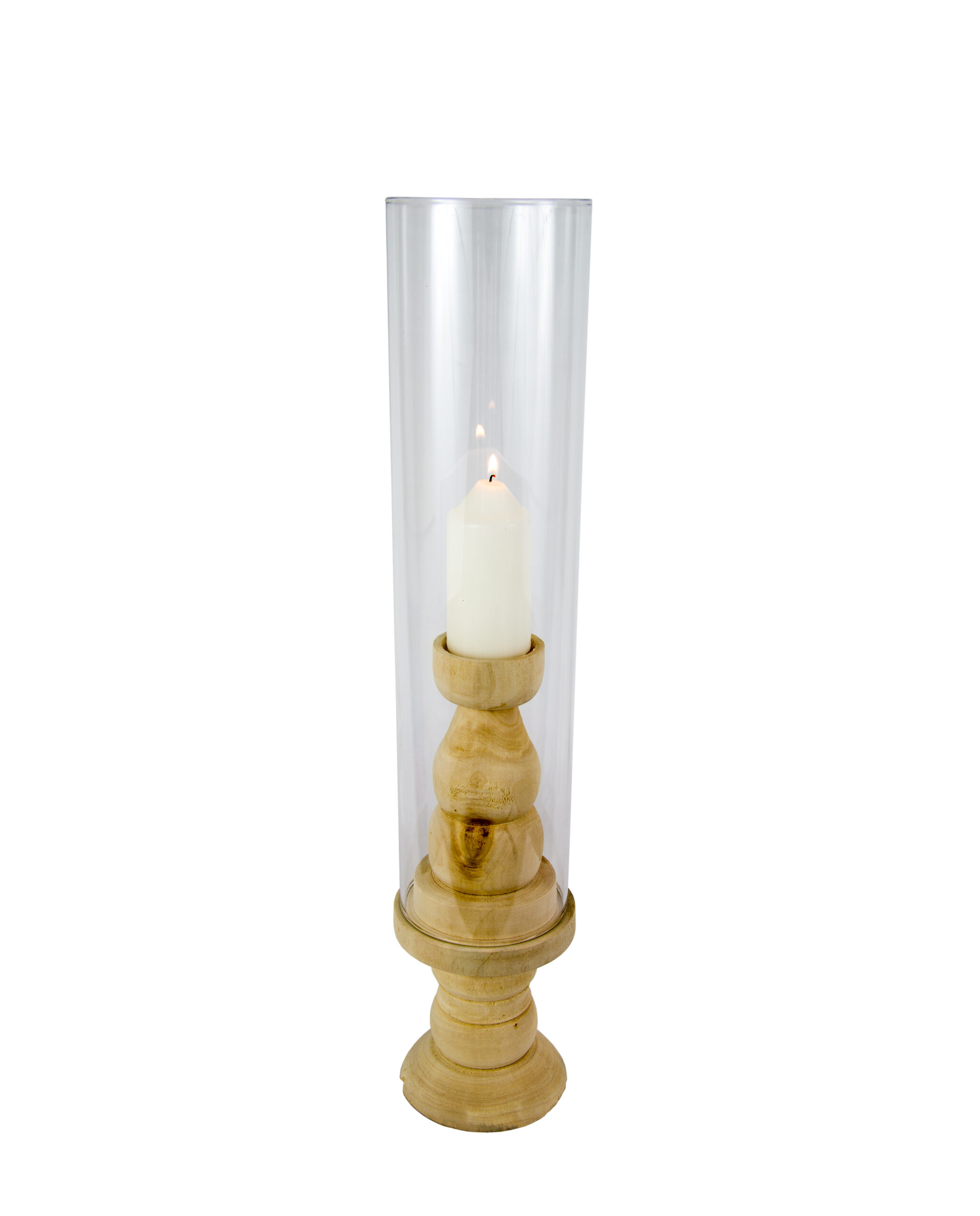 Holz-Kerzenhalter mit Glaszylinder in 3 Höhen