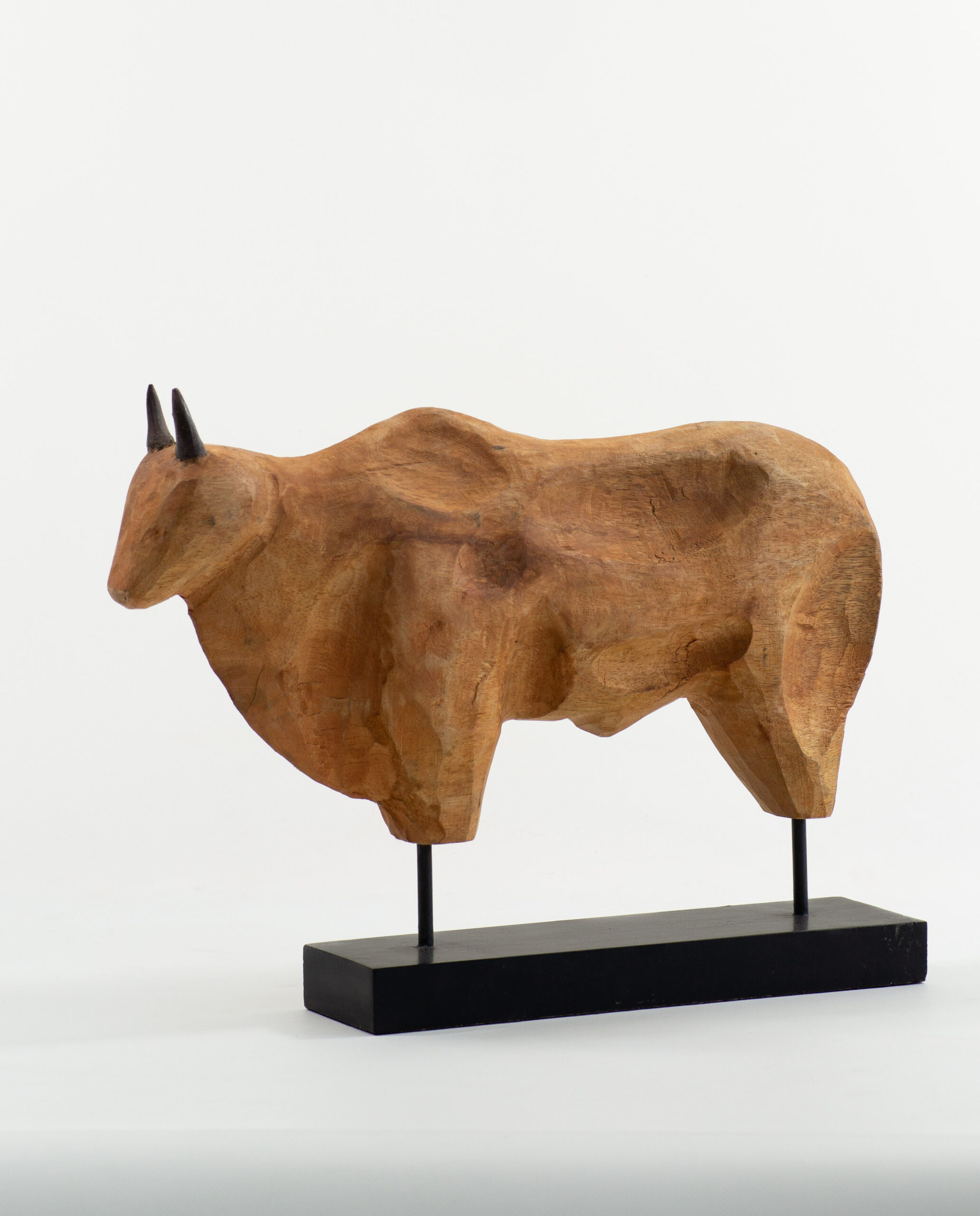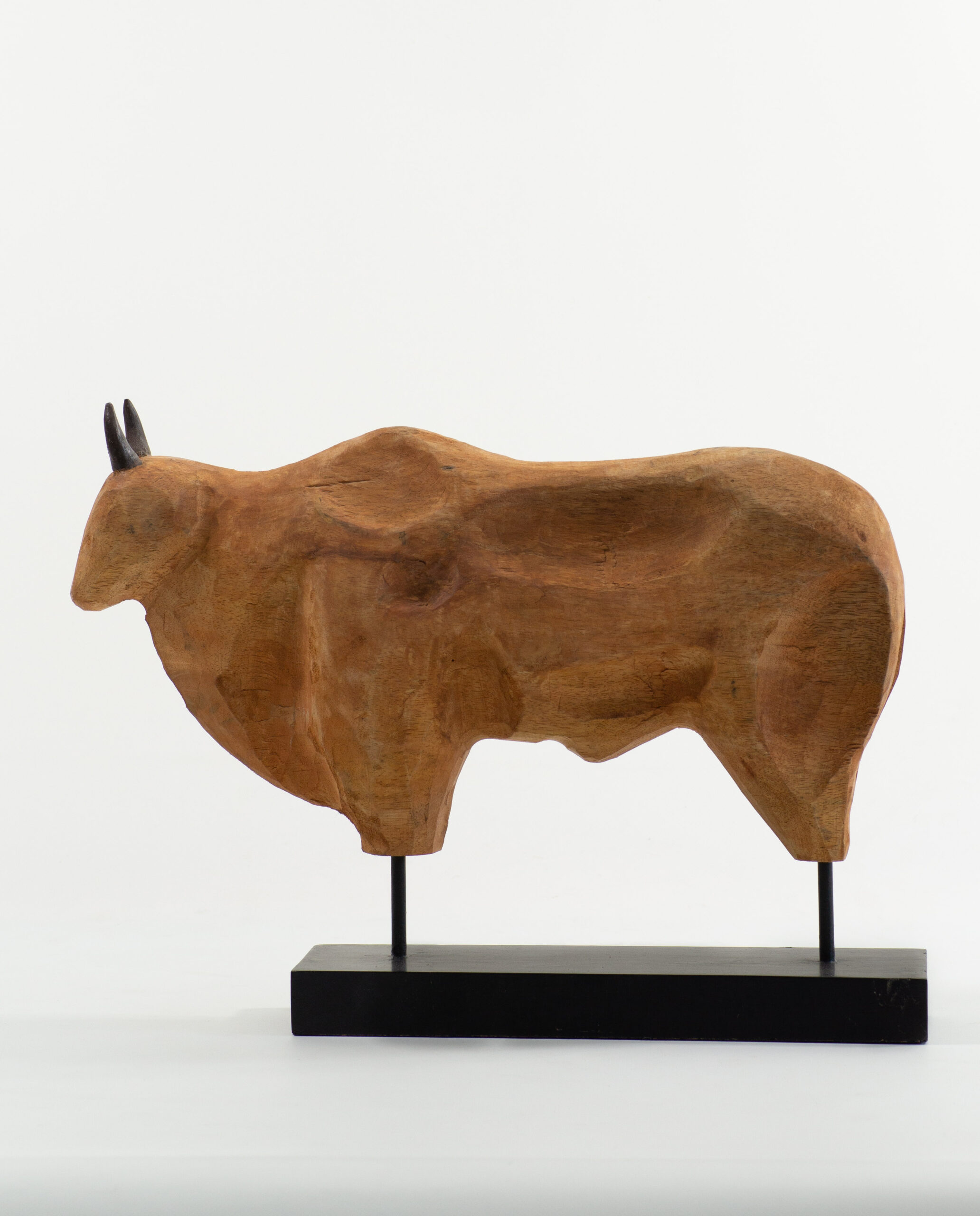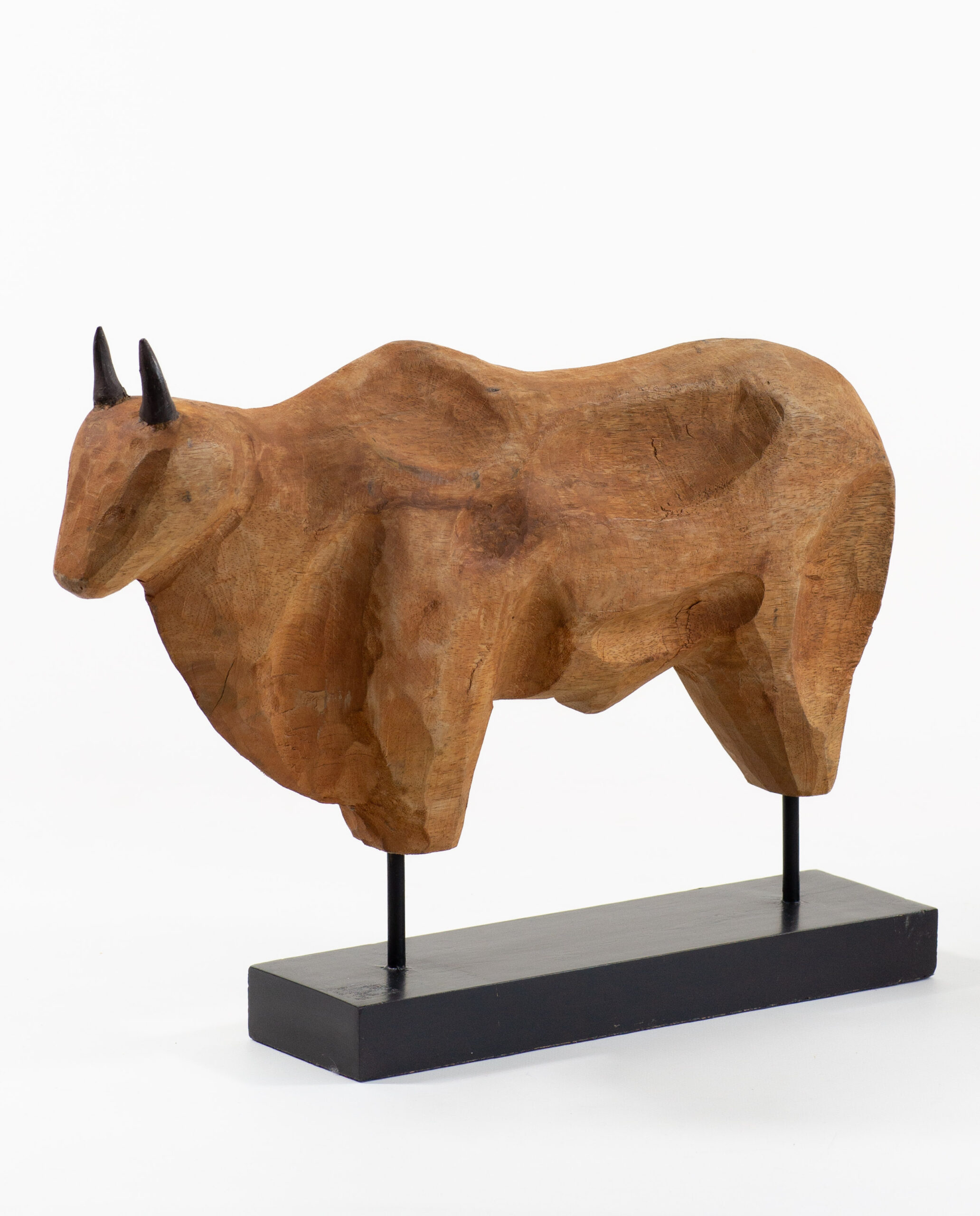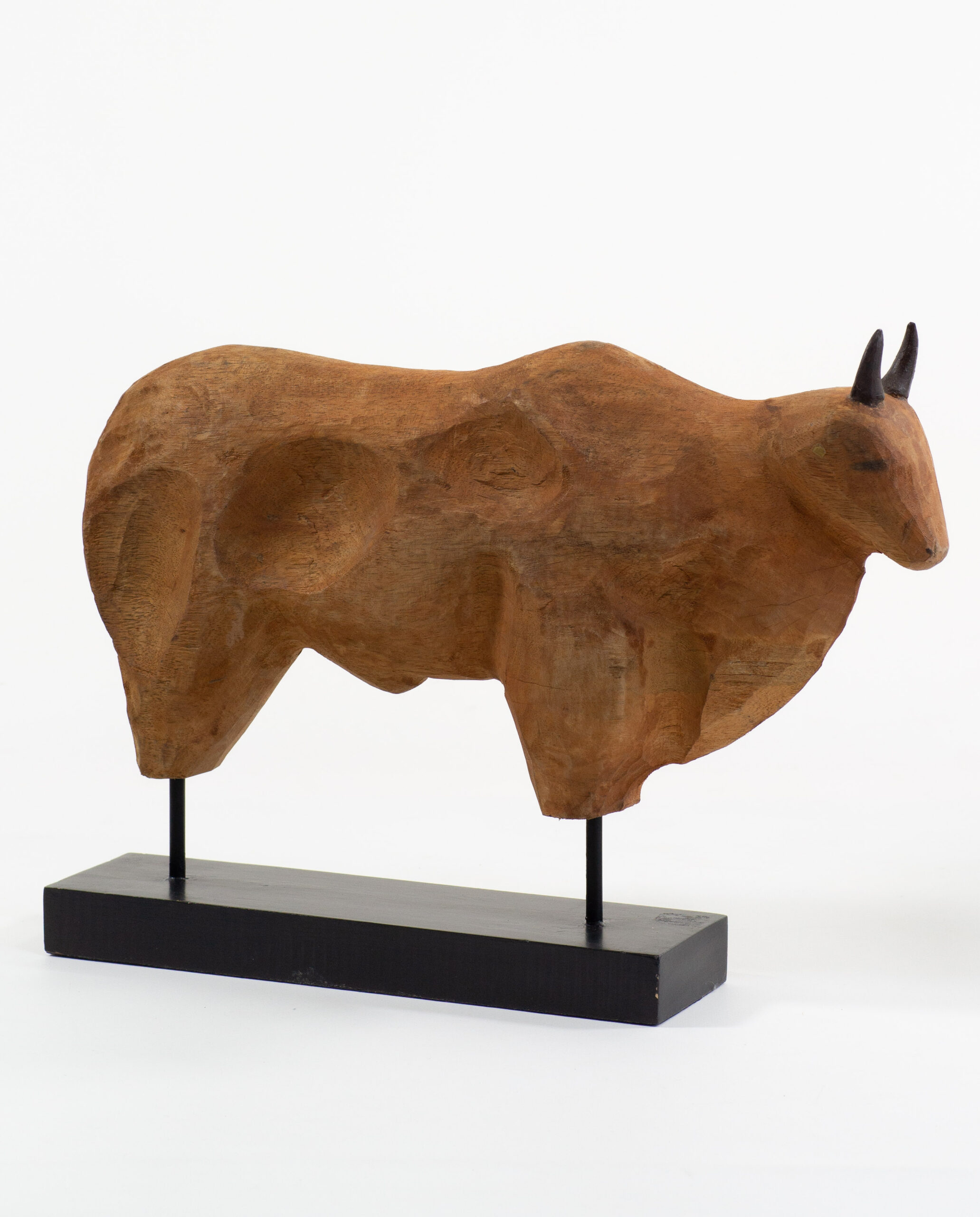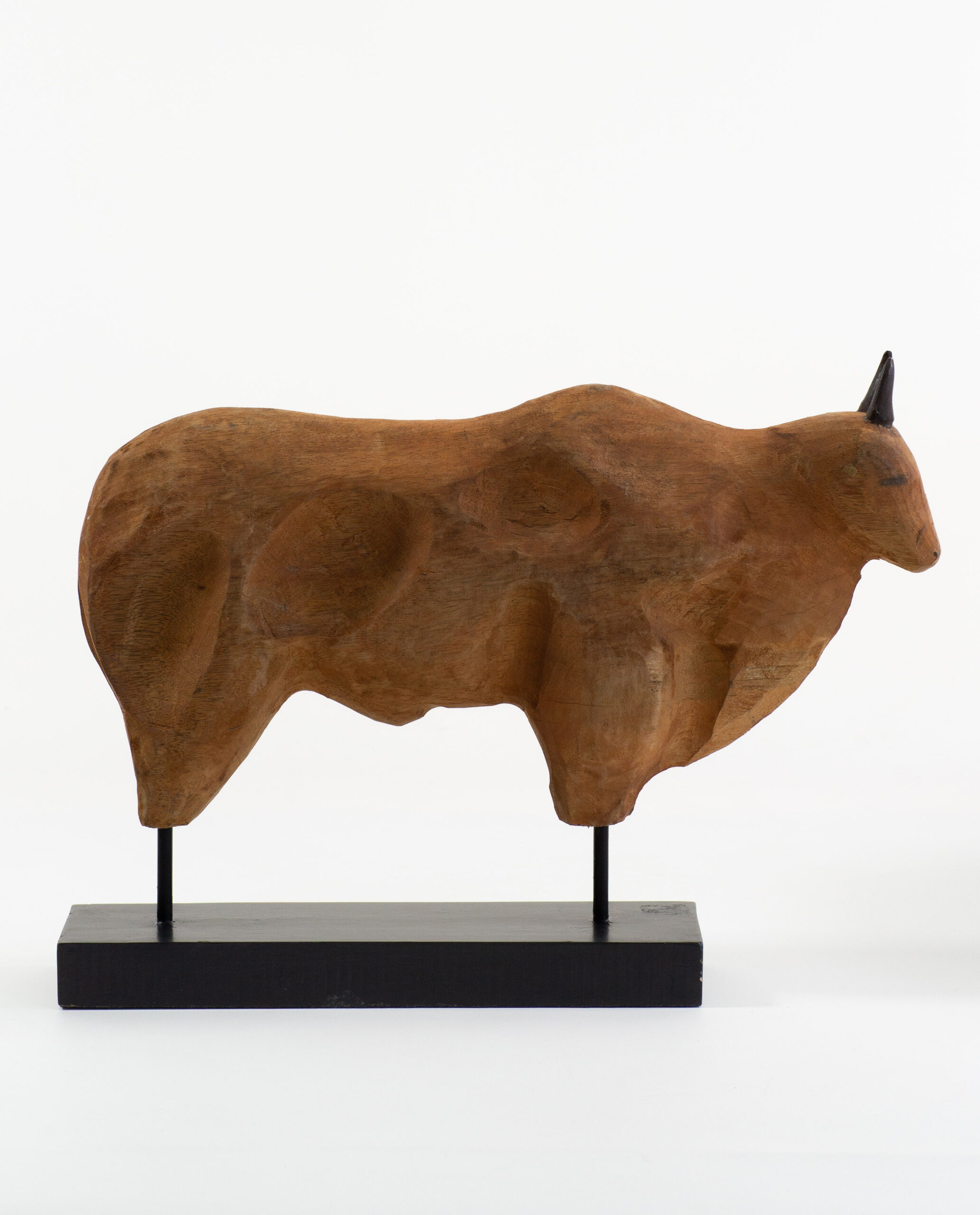 Holz-Skulptur BULL in natur, HBT: 32/45/10 cm, auf Holz-Sockel, Mangoholz, VE: 1 Stück
