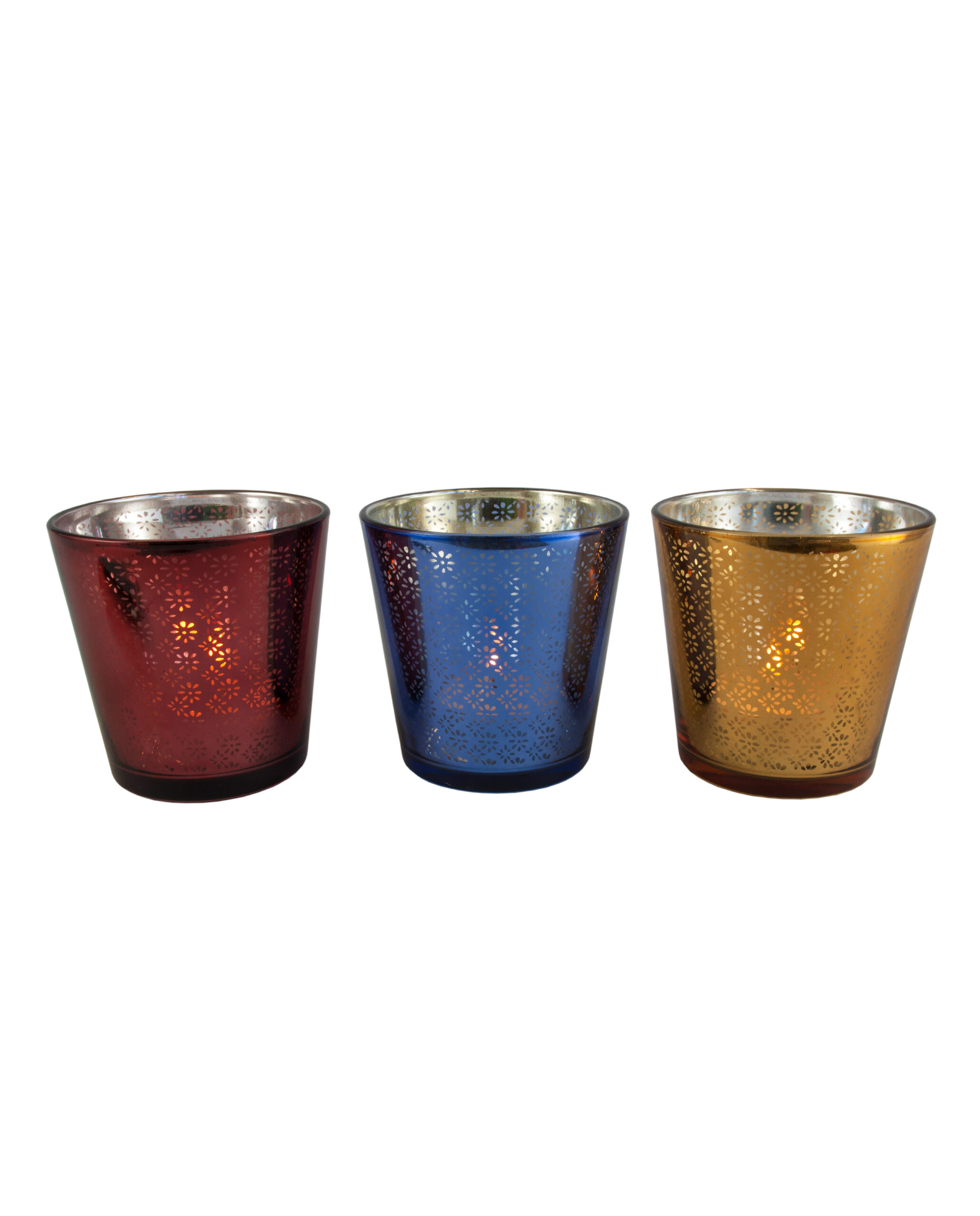 Set aus 3 Teelichtern mit Ornament LEA, braun, blau, gold, H: 7,5 ø: 7,5 cm
