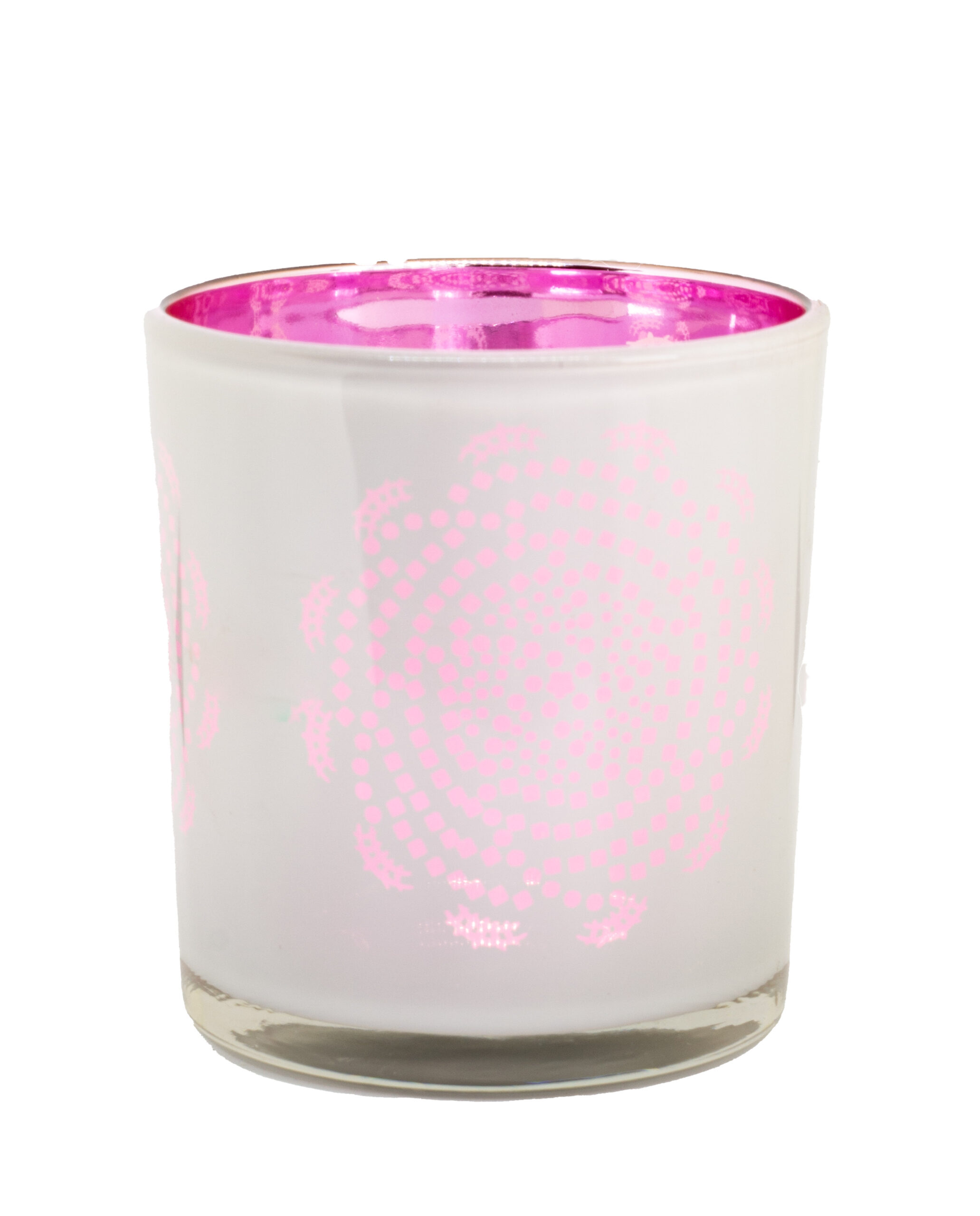 Teelicht NIEGEN, aussen weiß + innen pink, H: 8 ø: 7,3 cm