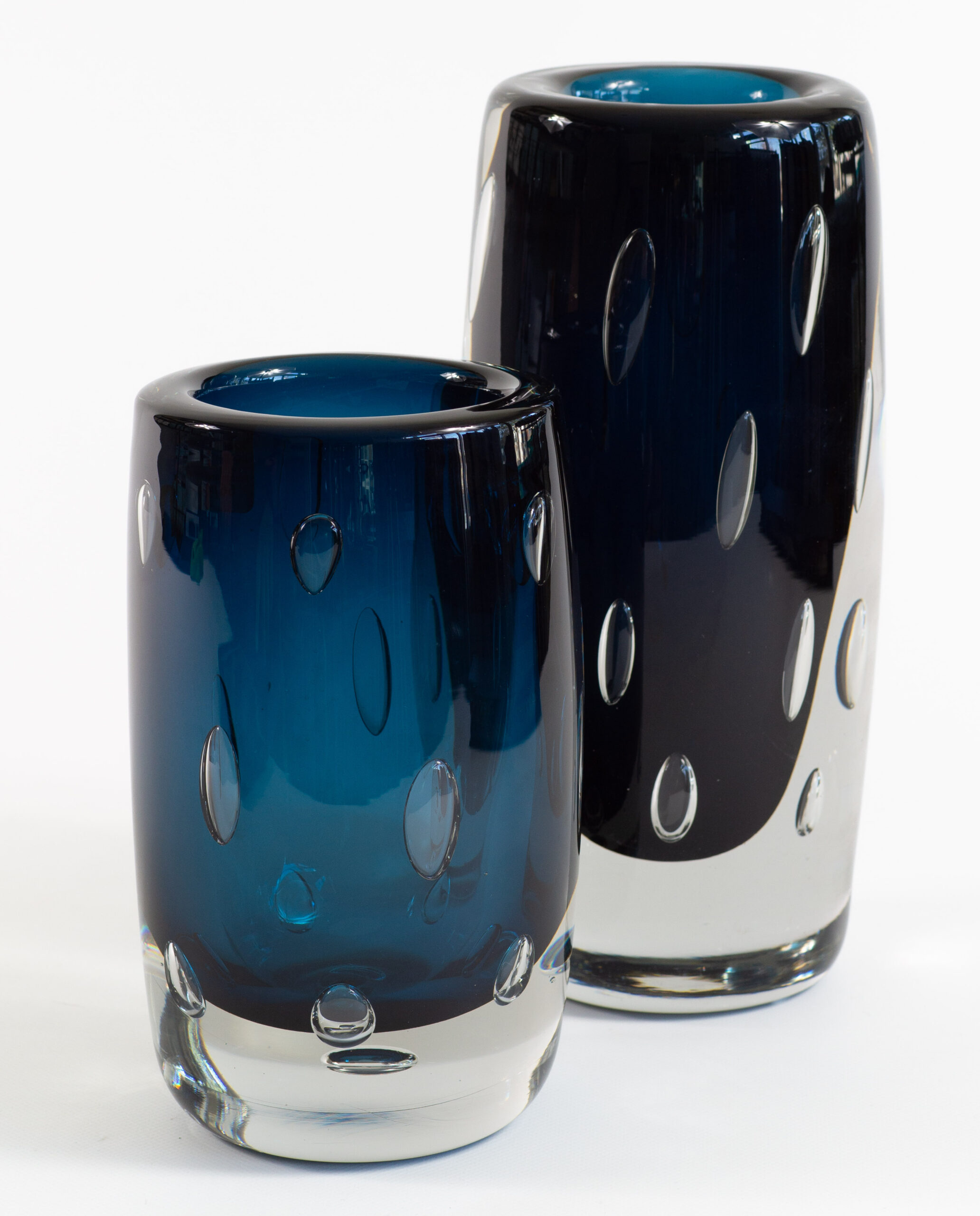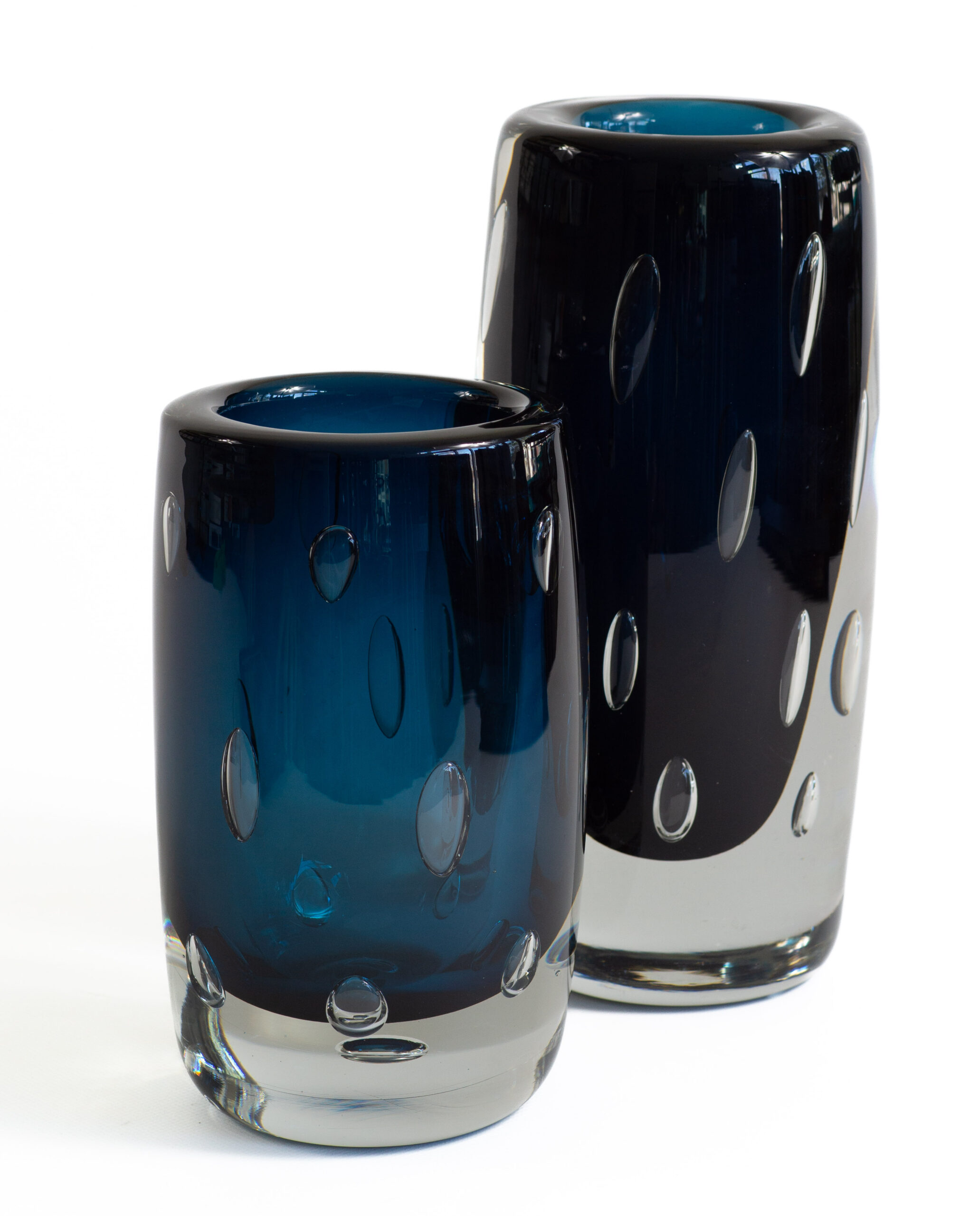 runde dickwandige Glas-Vase DOTS in dunkelblau, H: 28 ø: 13 cm, klare Punkte und klarer Boden, VE: 1 Stück