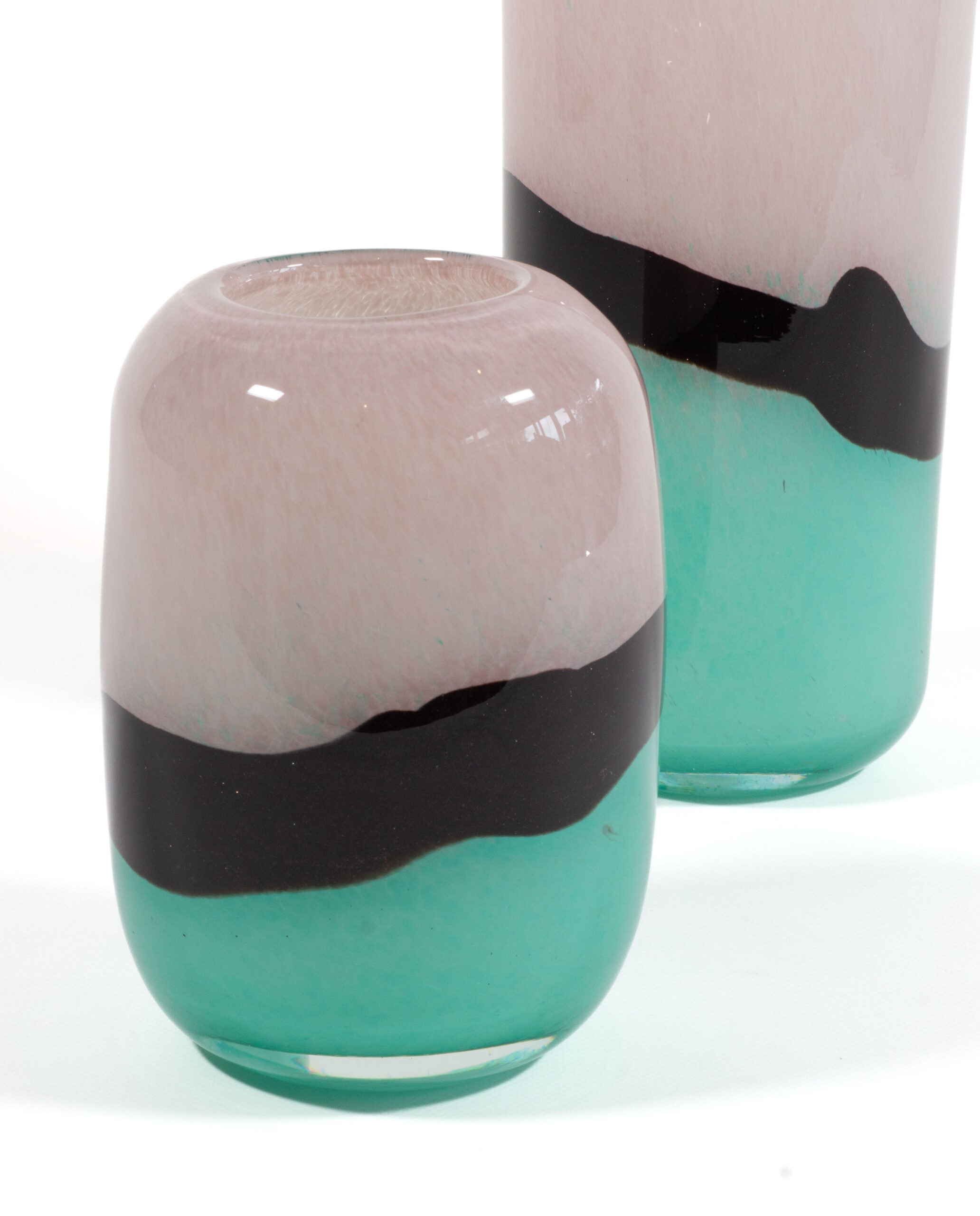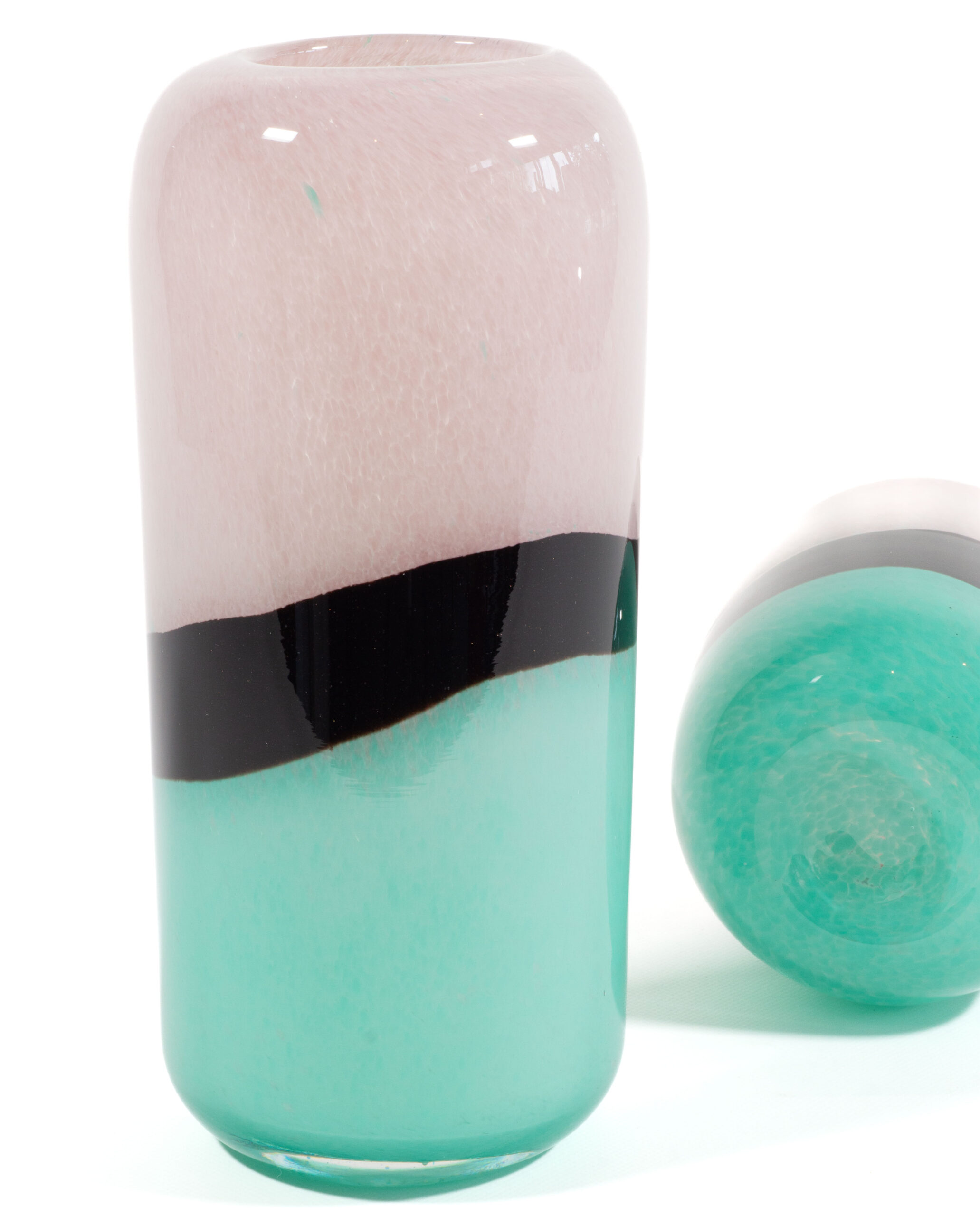 runde Glas-Vase KOZA, H: 32 ø: 15 cm, in rose, schwarz und mint, VE: 2 Stück