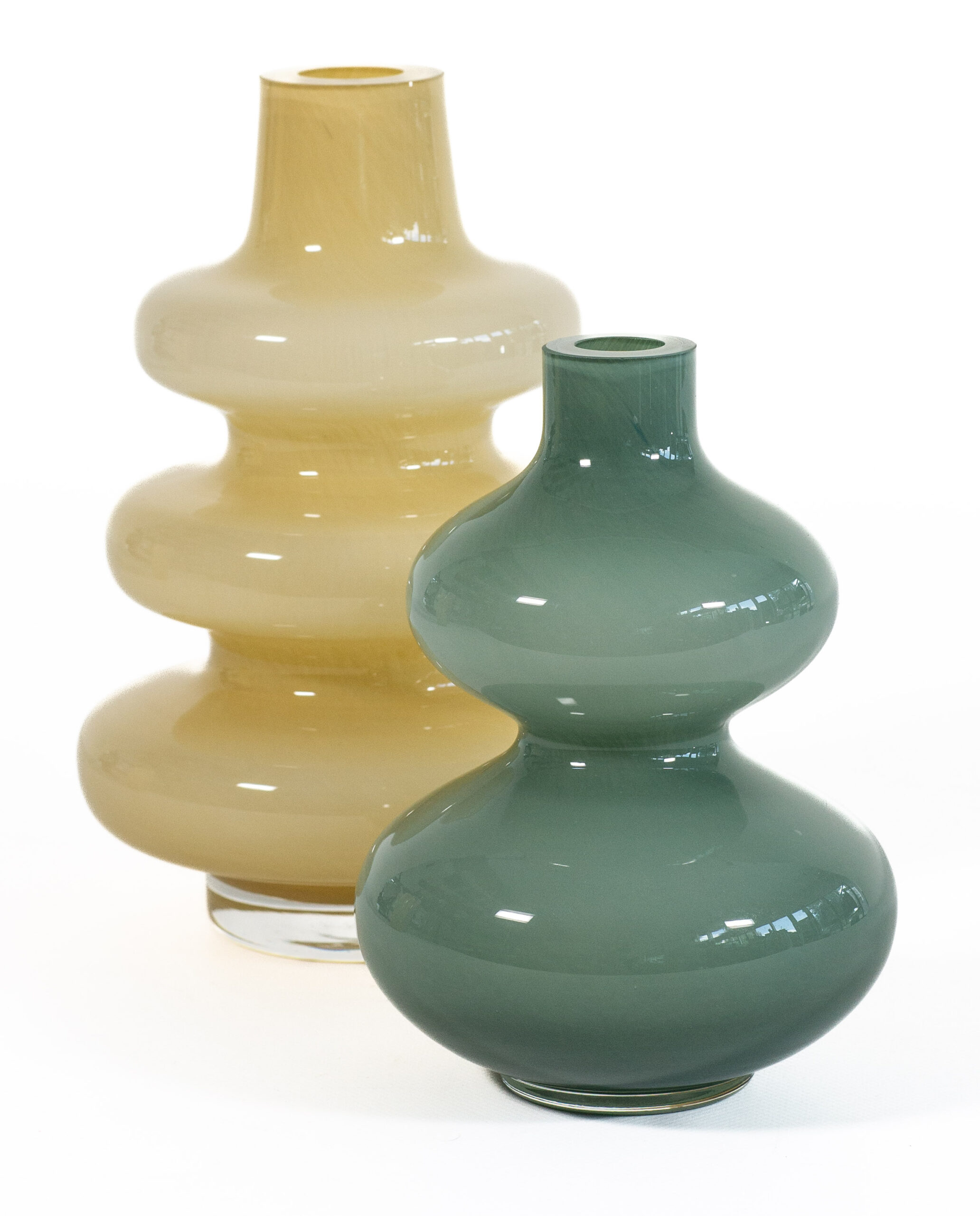 runde Glas-Vase LUMY in grün mit 2 Wölbungen, H: 19 ø: 13 cm, VE: 2 Stück