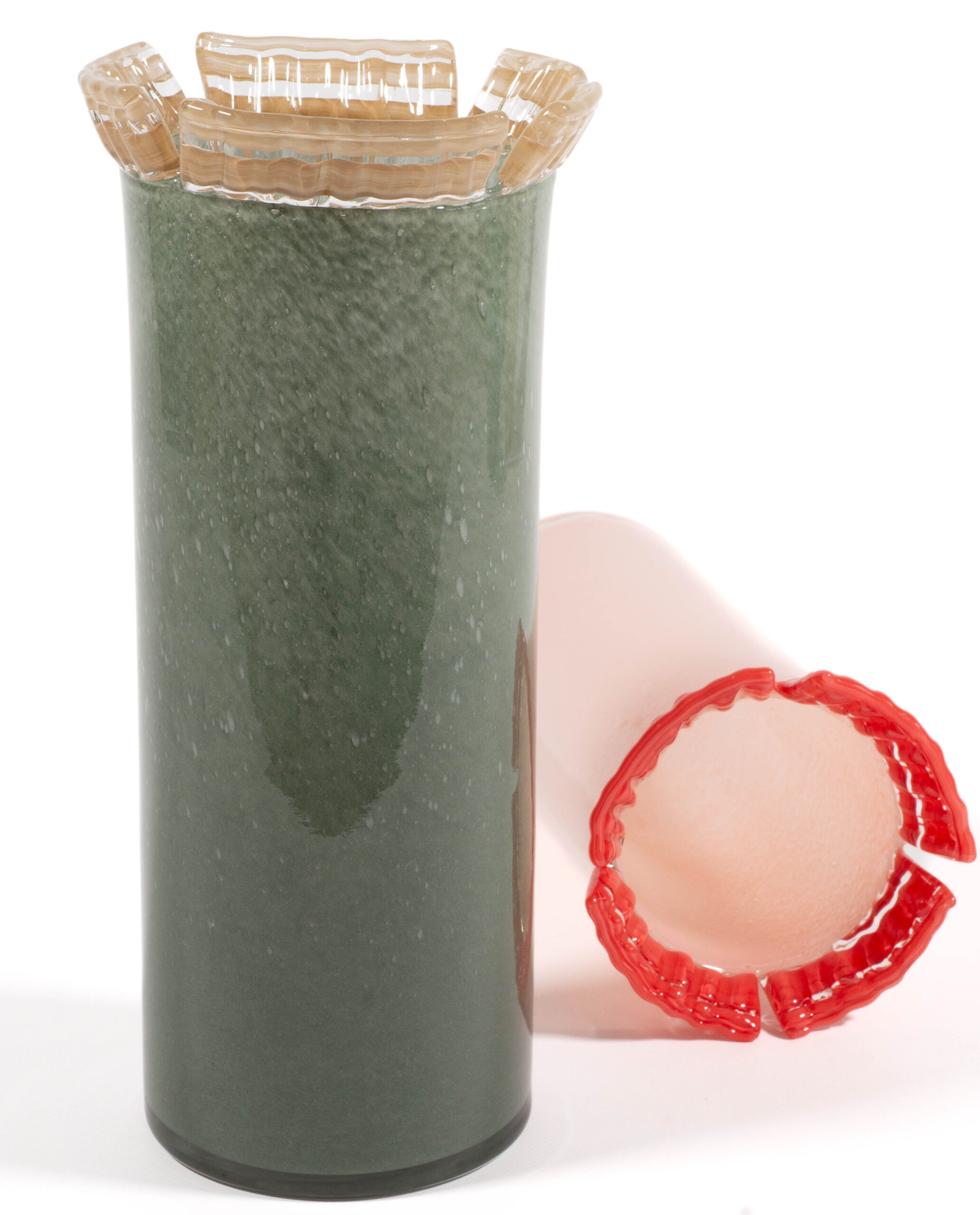 Glas-Vase NAMI in grün, H: 33 ø: 15 cm, Kragen in beige, VE: 2 Stück