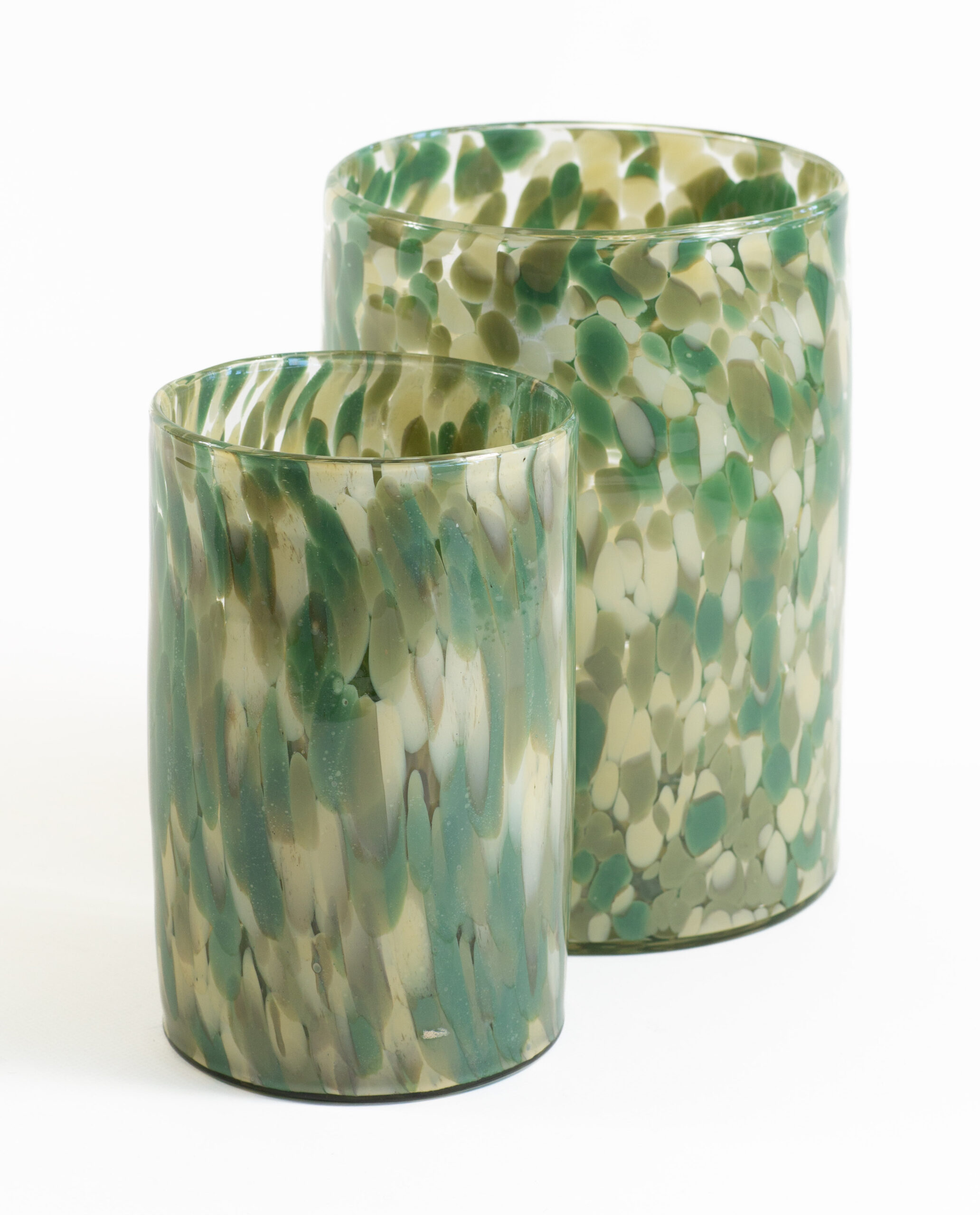 runde Glas-Vase PINTA mit grün und gelben Flecken, H: 19 ø: 12 cm, VE: 2 Stück