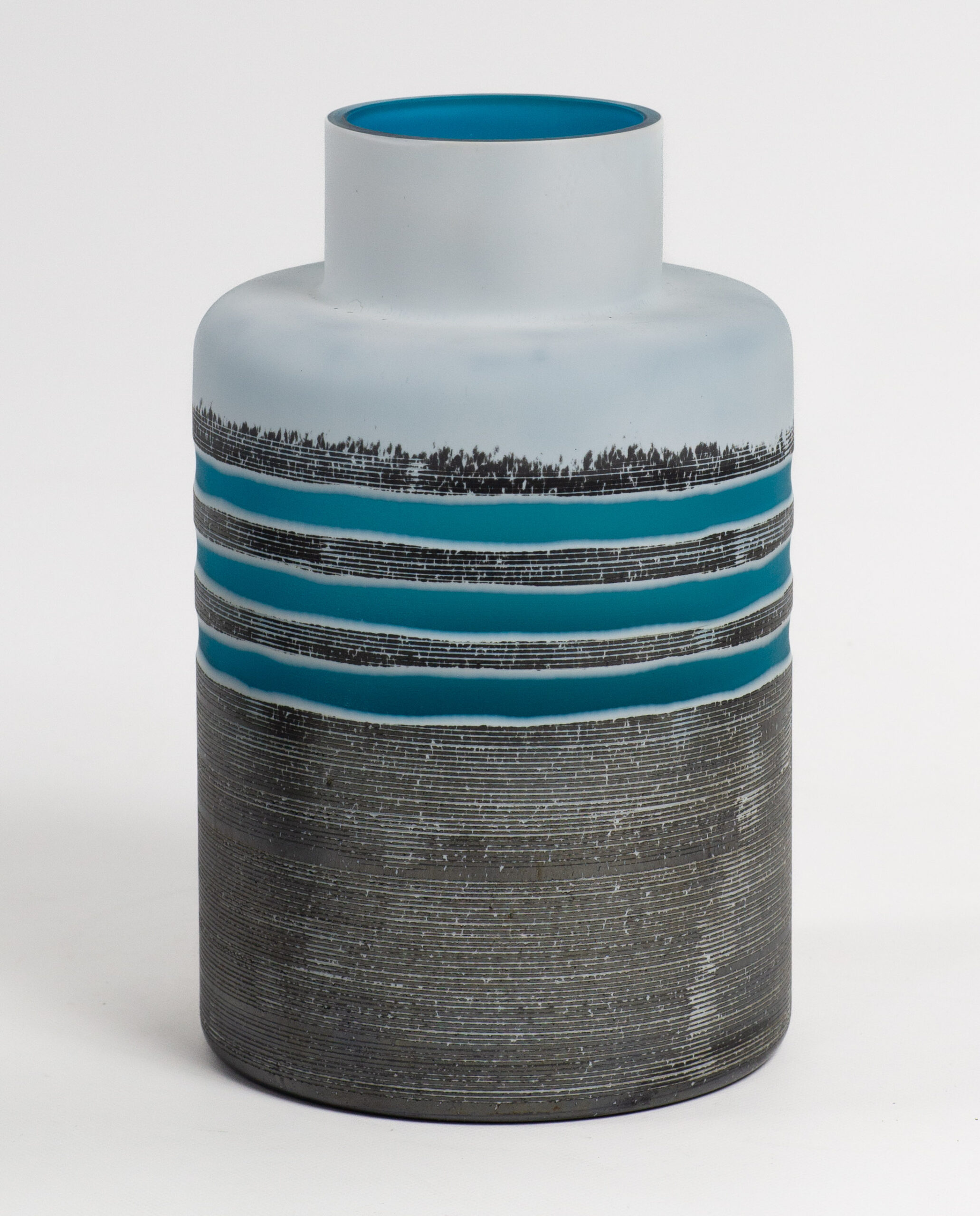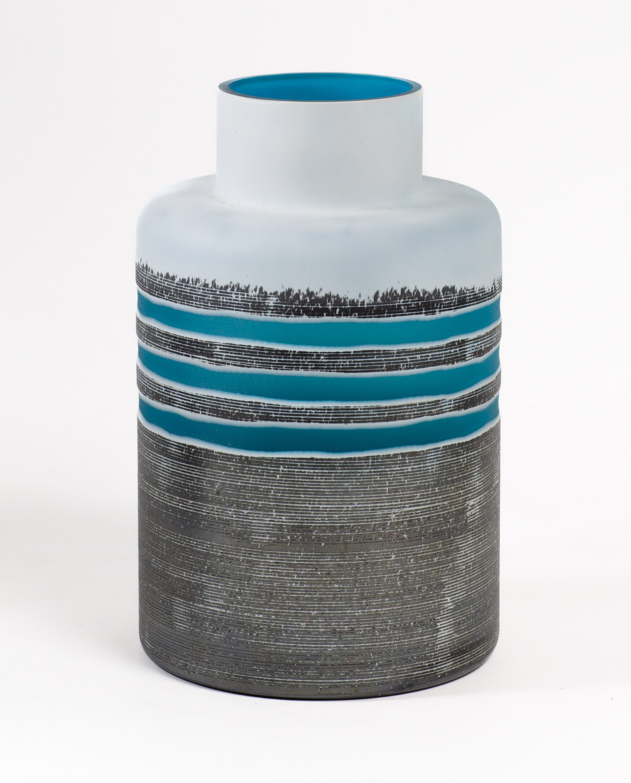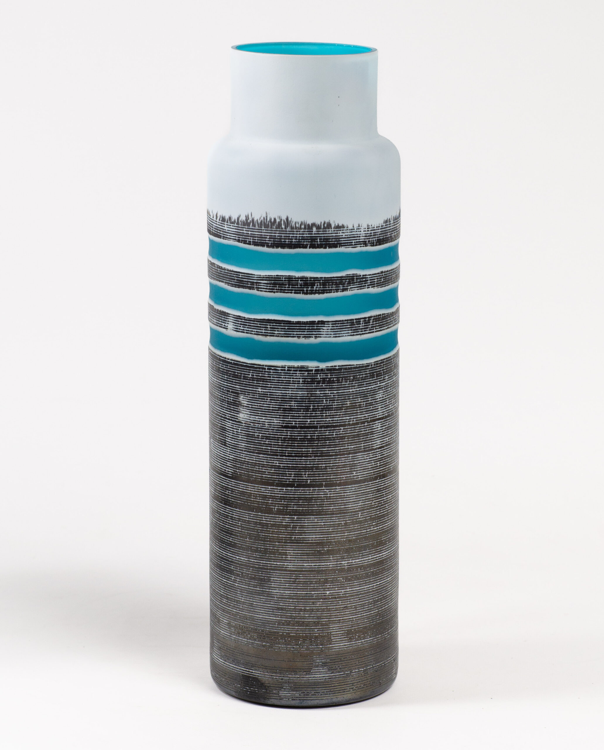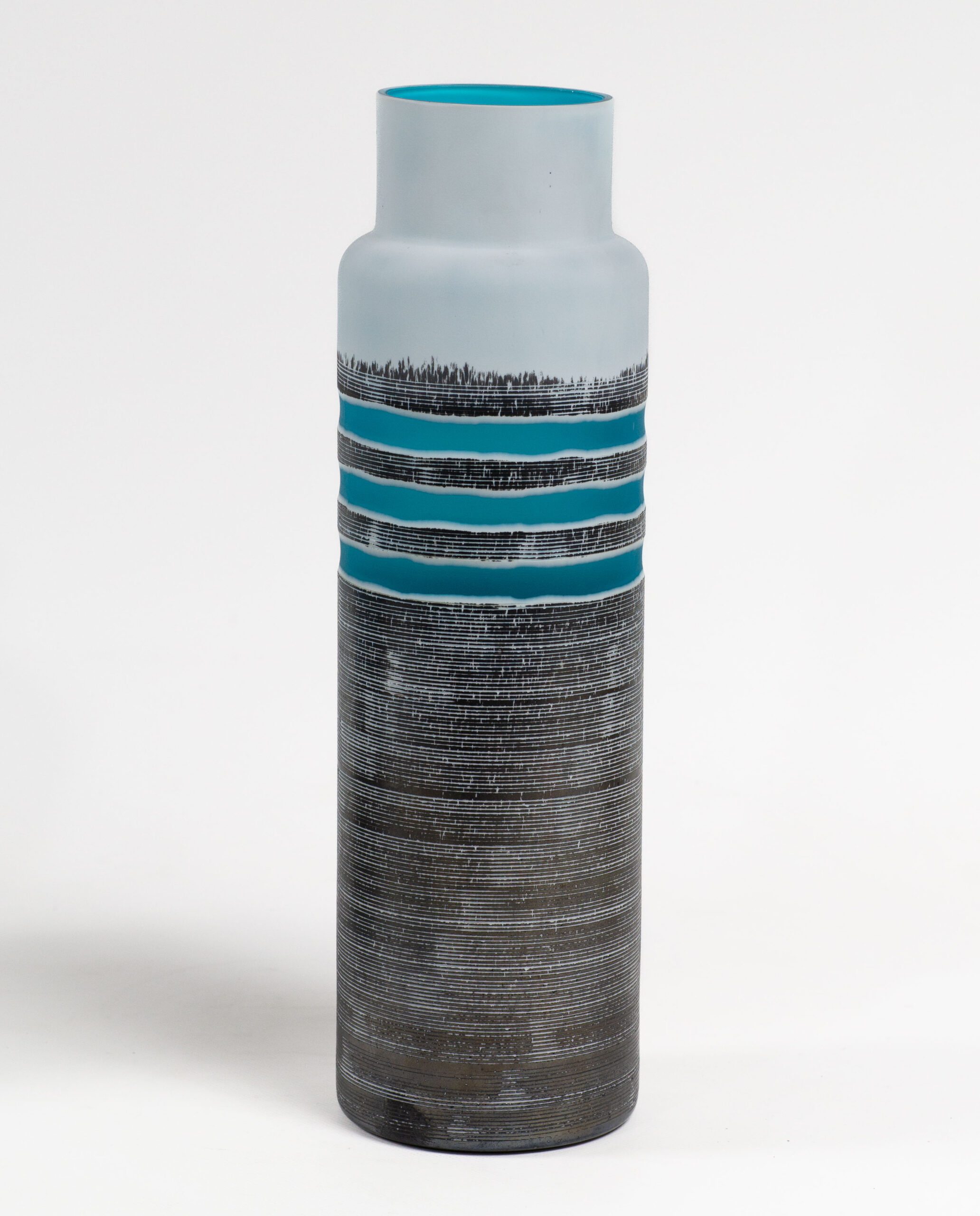 runde Glas-Vase TARAS in schwarz, H: 41 ø: 12 cm, mit türkis-weißen Streifen, VE: 1 Stück