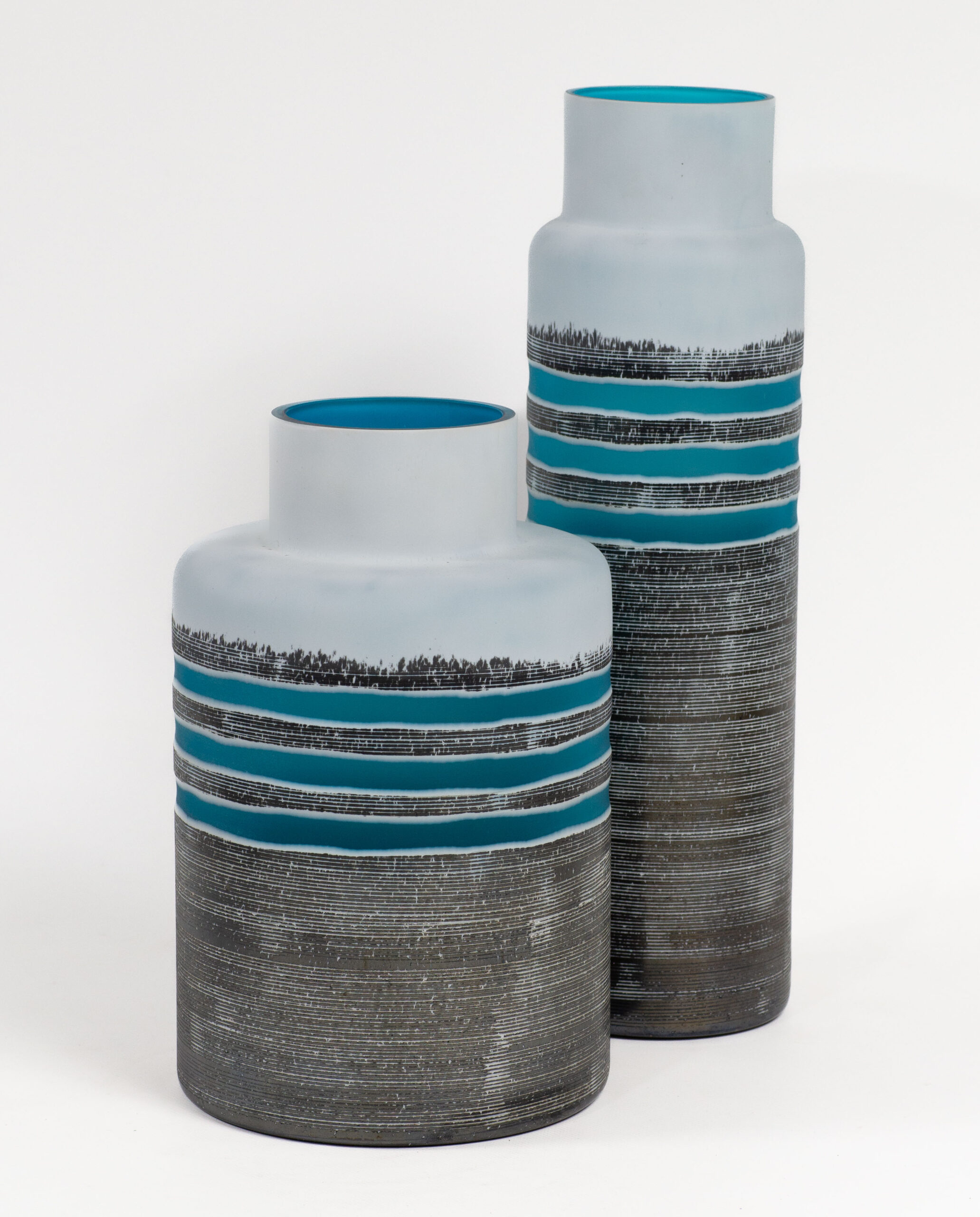 runde Glas-Vase in 2 Größen, mit türkis-weißen Streifen, VE: 1 Stück