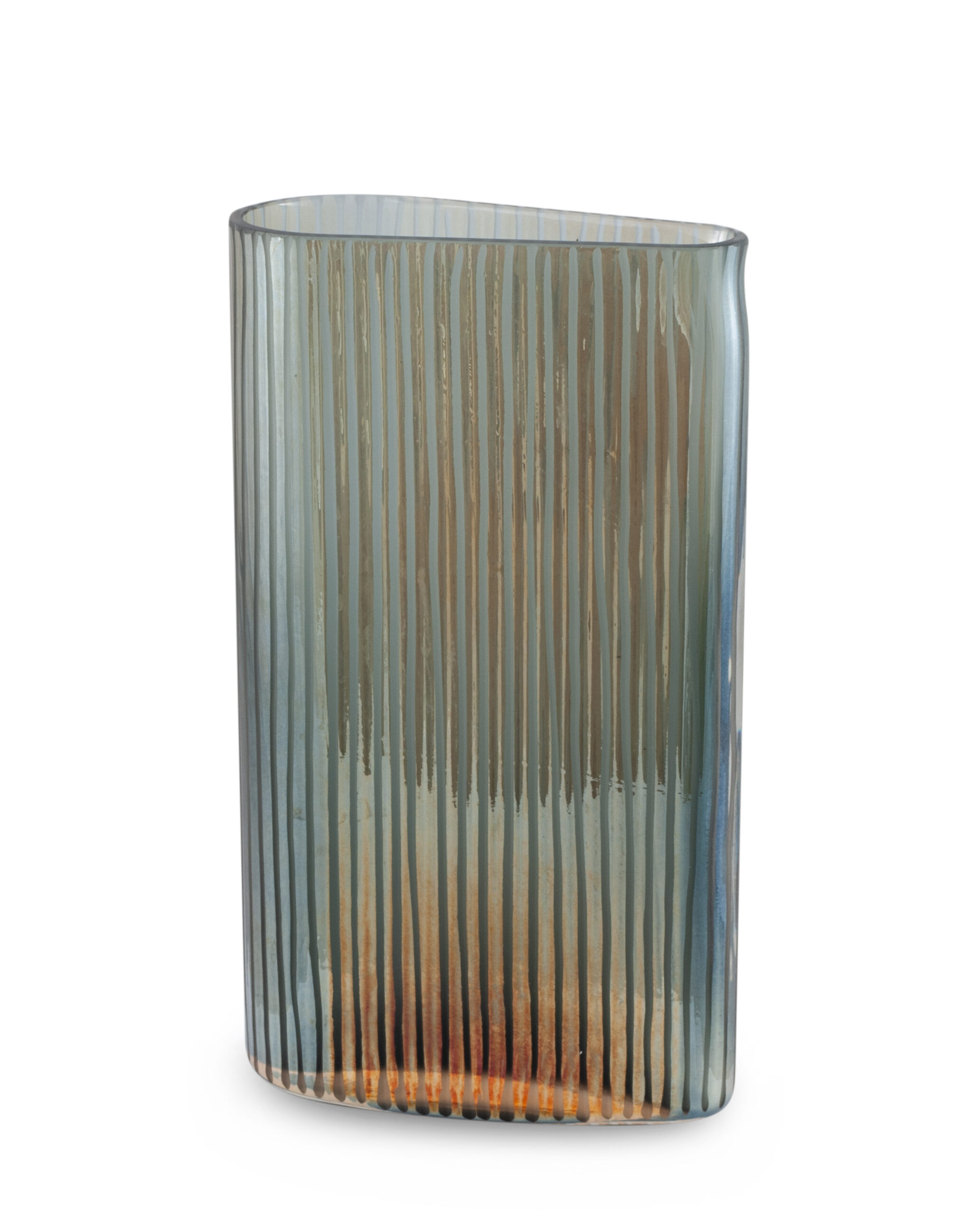 gerade Glas-Vase YAKE in gold-grau, matt-geschliffene Rillen, HBT: 34/20/9 cm
