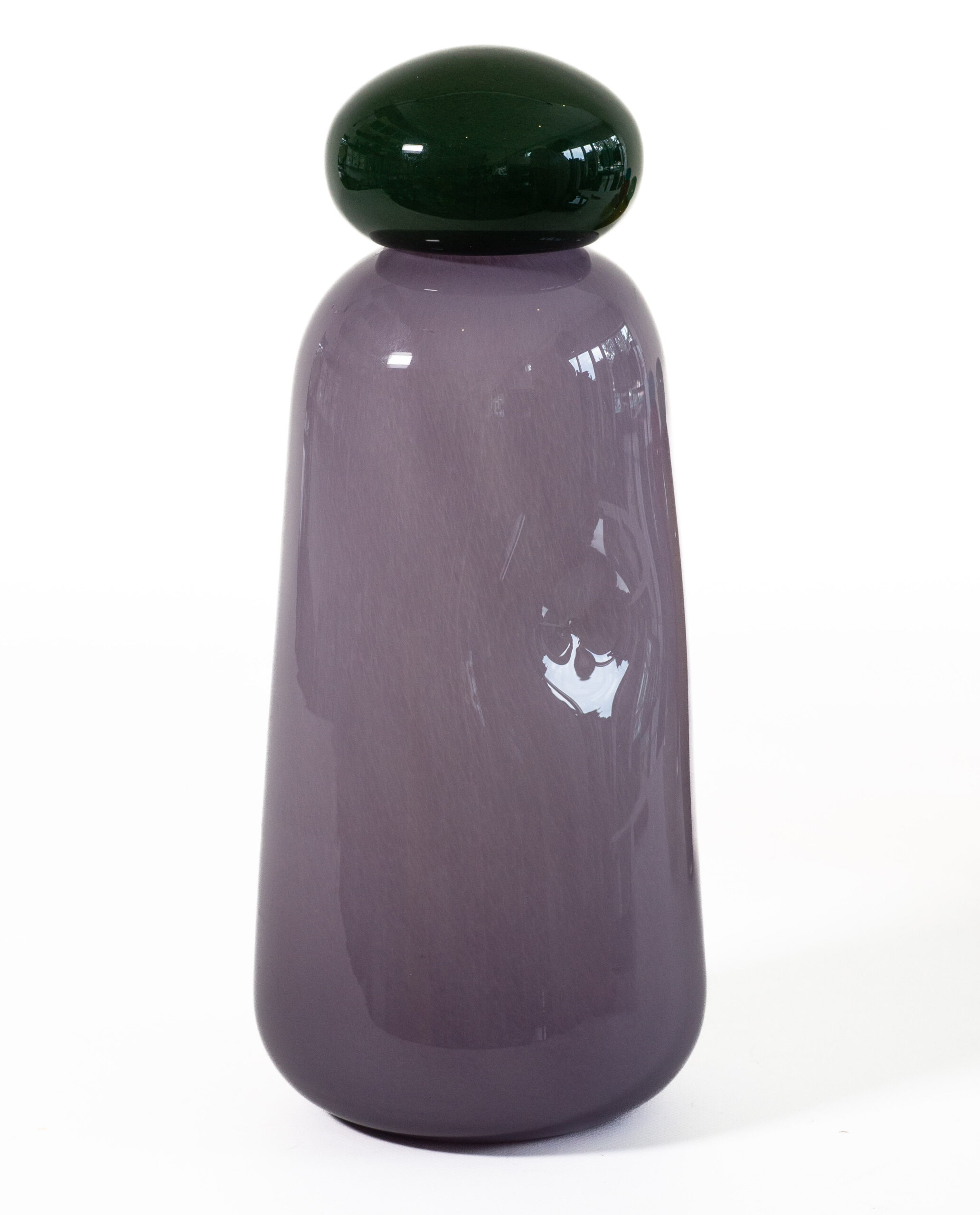 runde Glas-Deckelvase ZWAT in violett, H: 36 ø: 16 cm, Deckel in dunkelgrün, VE: 2 Stück